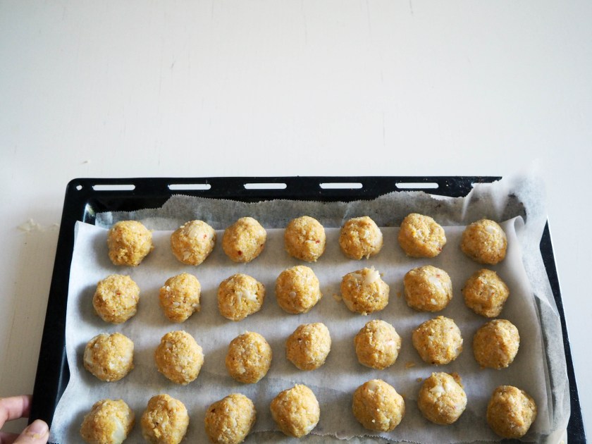 I like these balls great just out of the oven. But I loved them even more when I cooked them a little more with a bit of olive oil on a pan after baking, to increase crispiness and to have them a bit more browned. I highly recommend that! Enjoy!