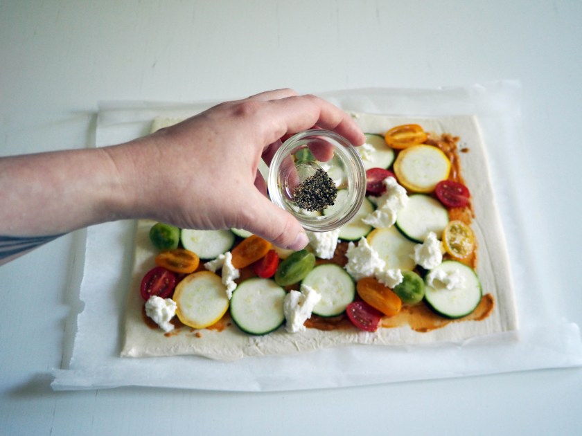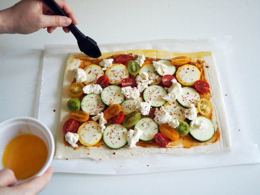 As I was watching some videos on my bed in an extremely lazy mood, I remembered that I had this yellow zucchini to make this recipe and it was not going to last in the fridge forever. So I pulled my lazy ass up from the bed and started to work on it (first I had to thaw the frozen puff pastry of course).