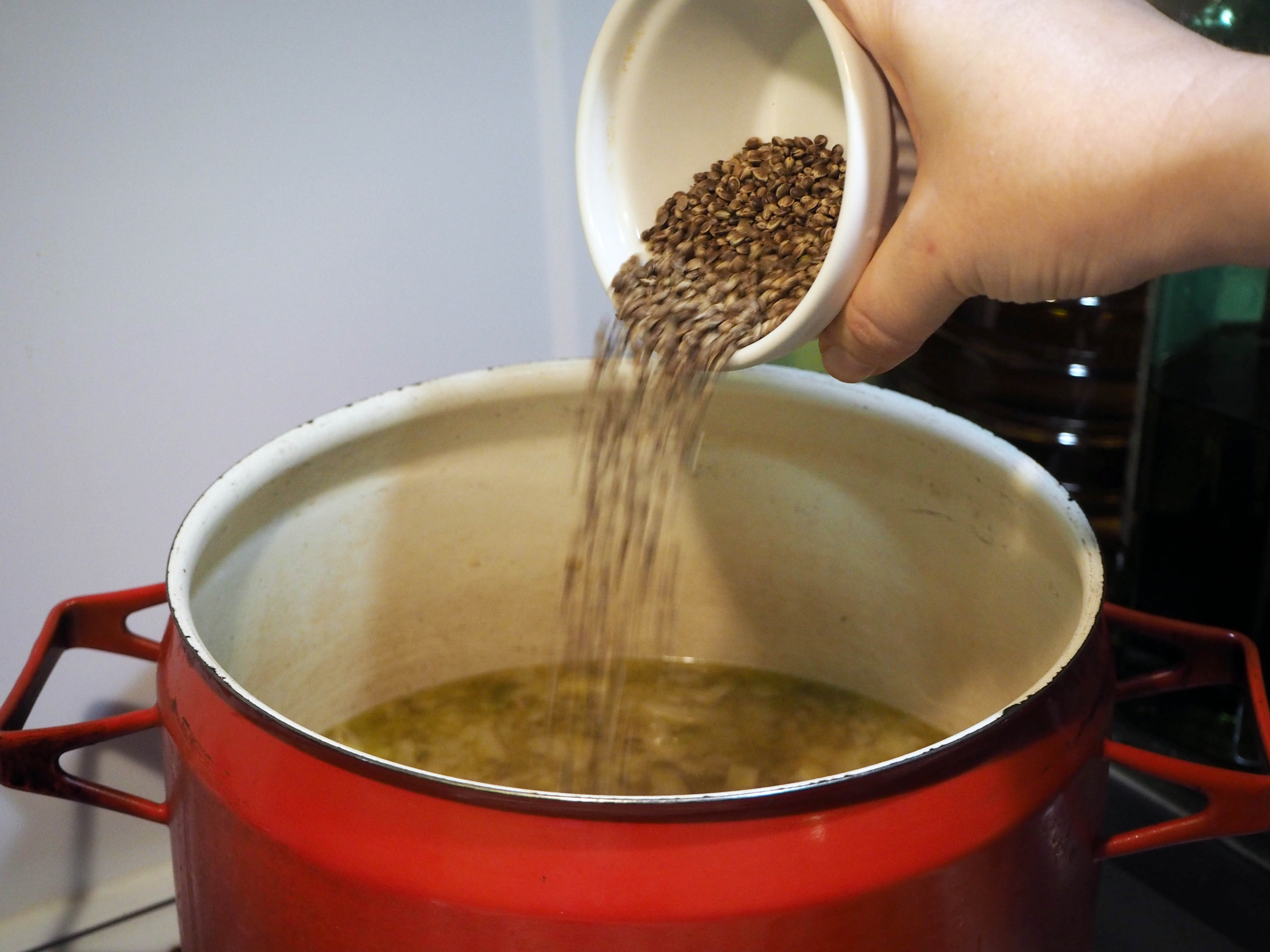 7. At the 20 minutes mark, stir in the hemp seeds and cook for 5 more minutes.