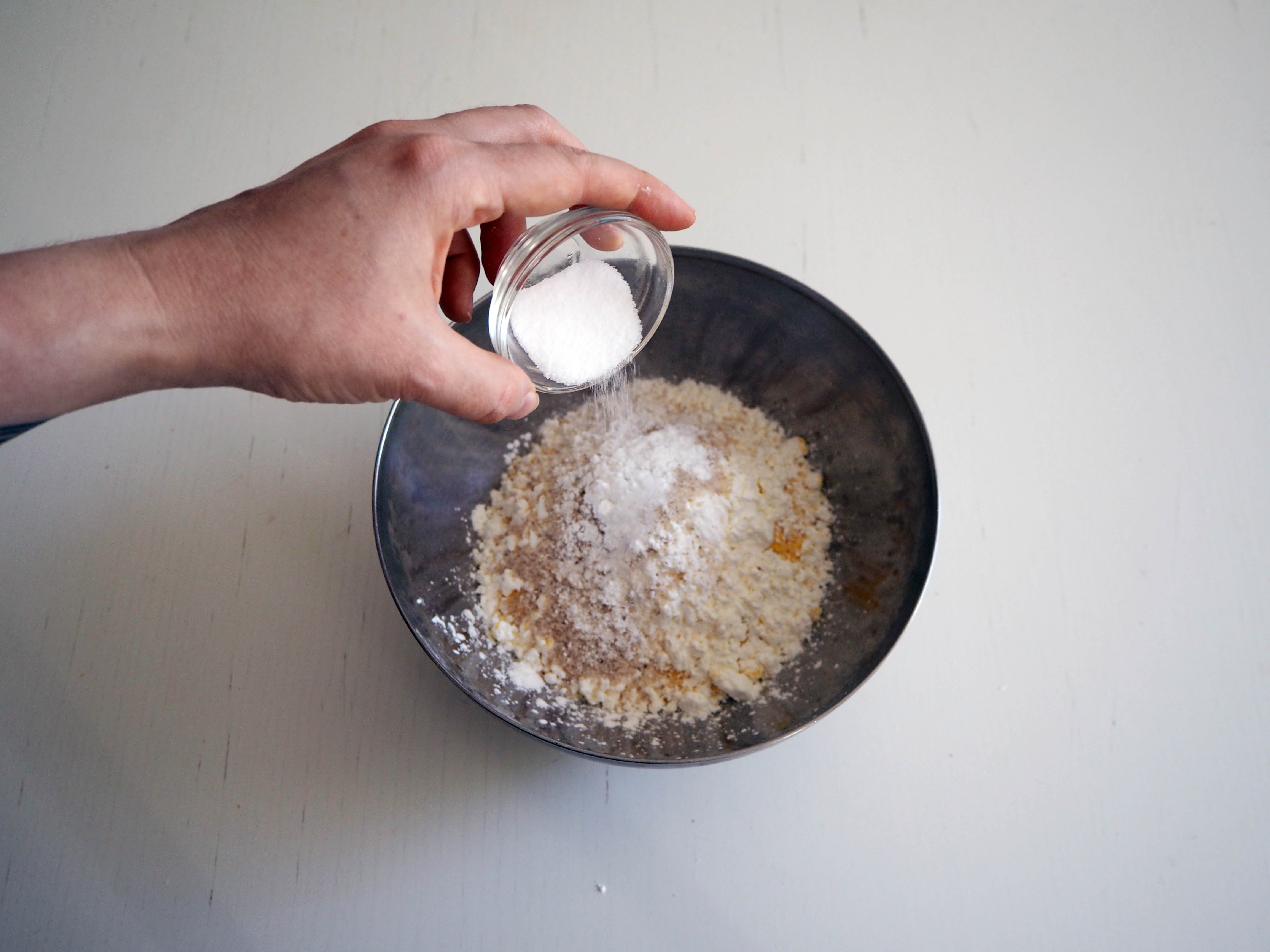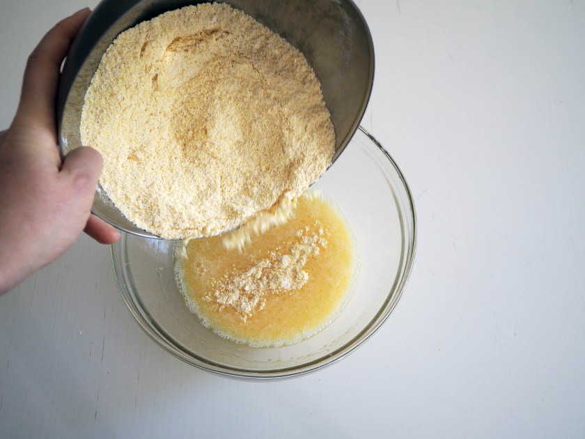 This (and similar gluten free muffins) was developed at that time for this purpose. I especially liked working with corn flour because it is much more flavourful than plain gluten free flour blend or other gluten free flour types such as buckwheat or sorghum. I also like rice flour but I like it more in sweet recipes and I like the texture it gives more than the taste.