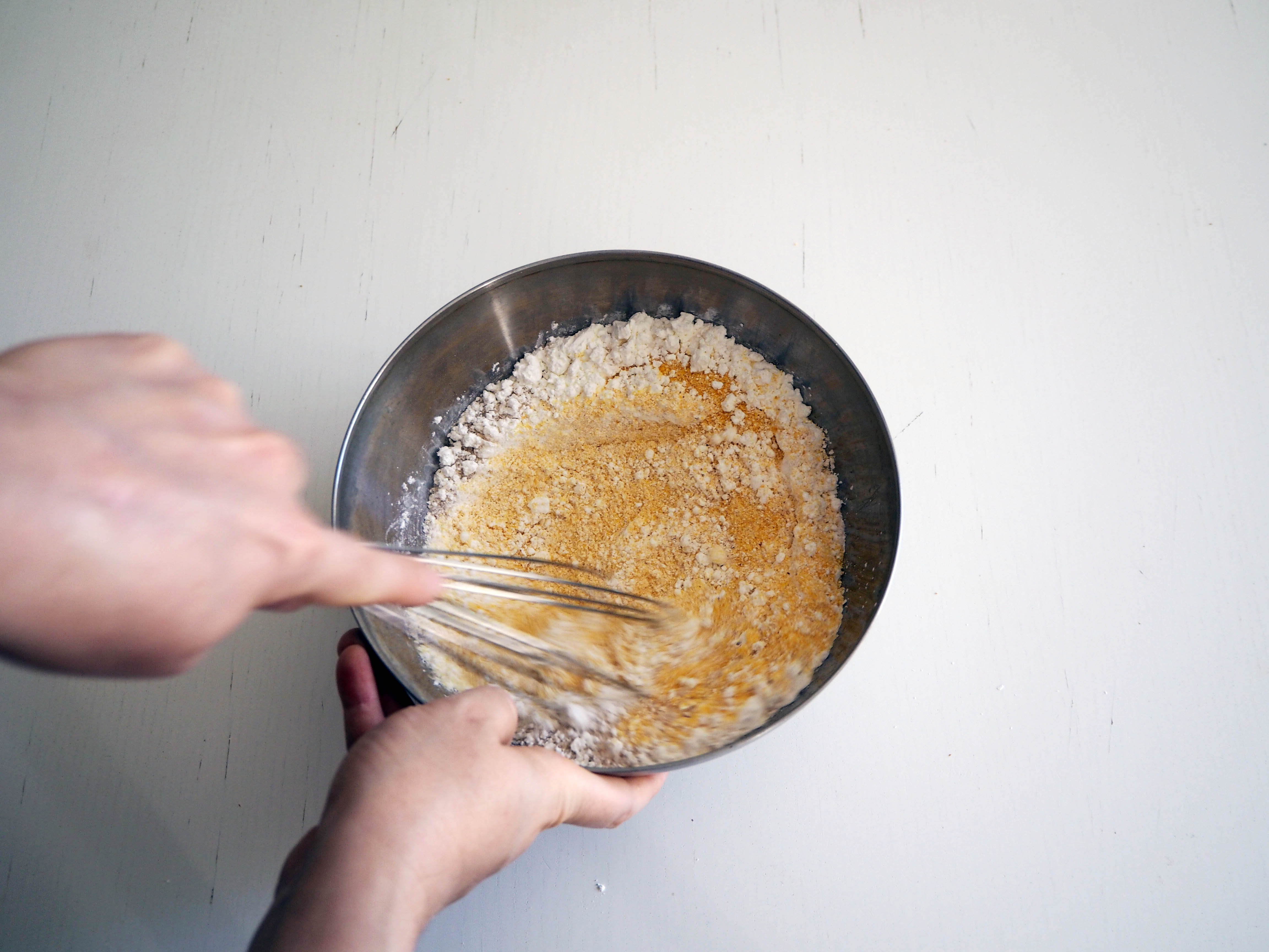 2. In a medium bowl, put the first 6 (dry) ingredients and whisk.