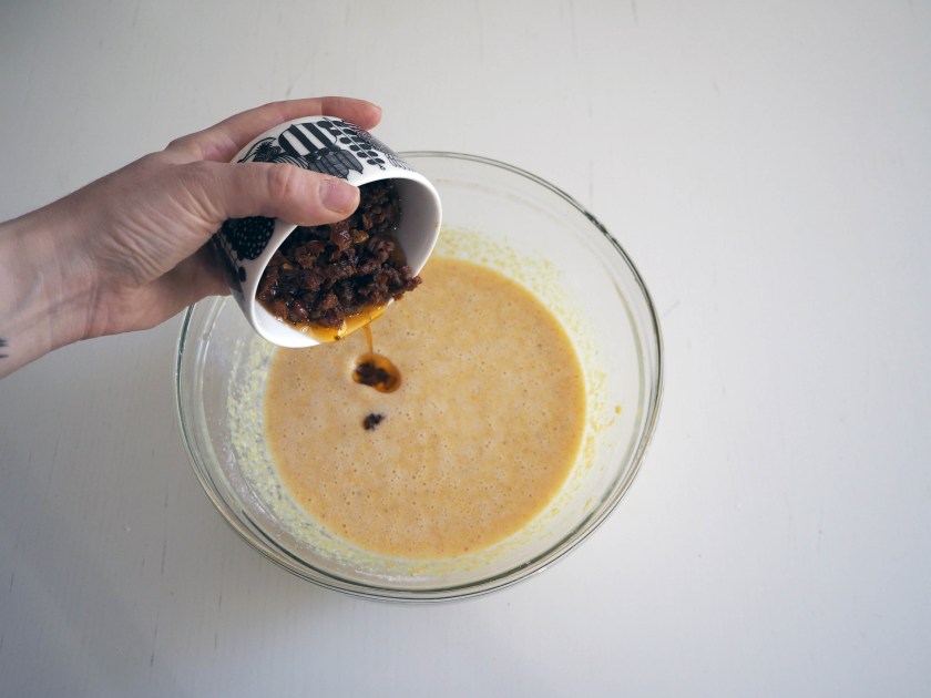 5. Add the remaining ingredients into the batter mixture and fold.