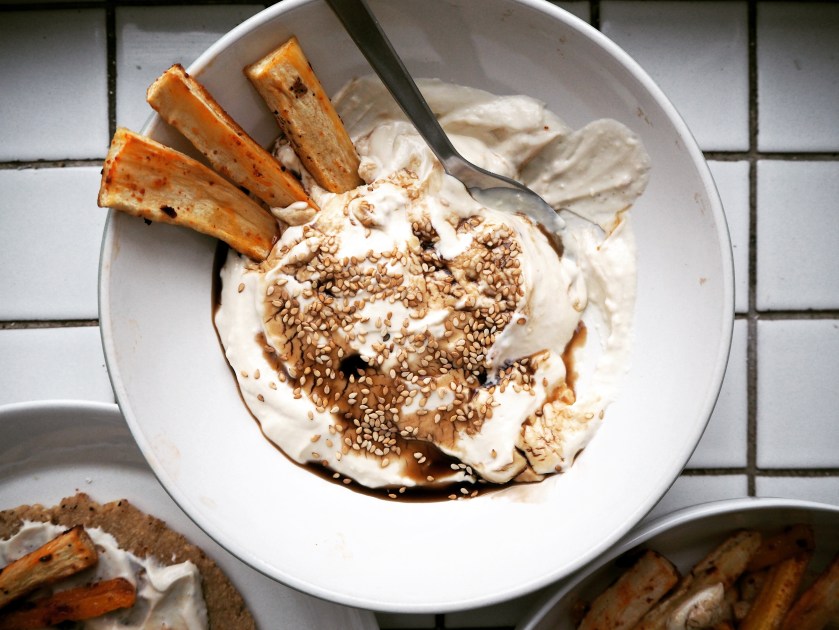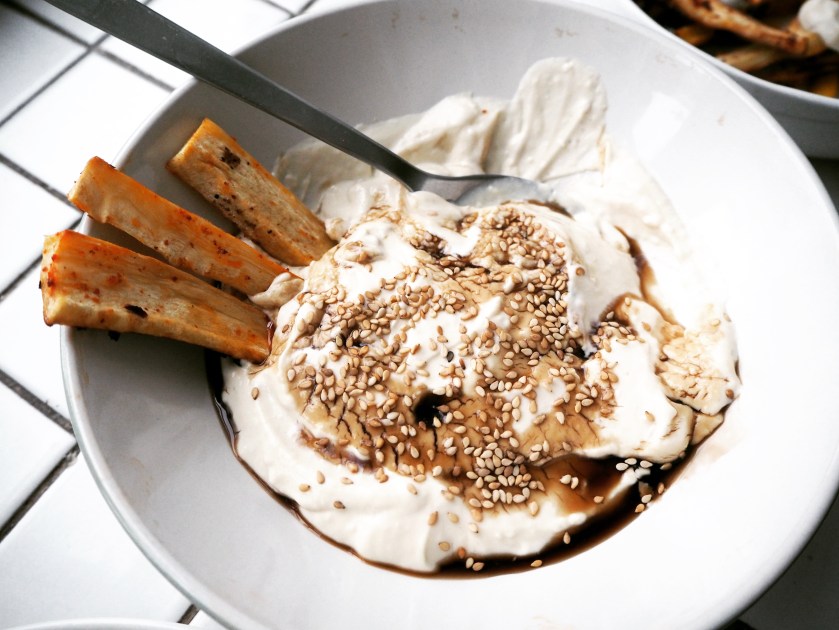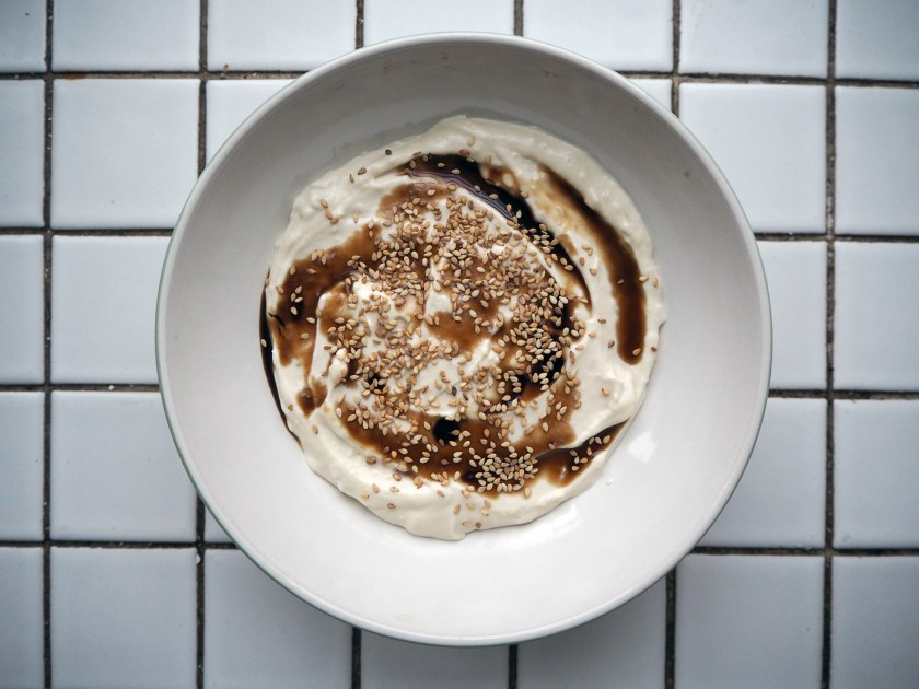 When I tried the vegan diet a few times before, I couldn’t commit to it because of the yoghurt (and cheese) issue. None of the dairy-free yoghurt options could replace the real one. Even the ones with “Greek” or “Turkish” type labels didn’t do it. It was always too sweet. You see, yoghurt is something savoury for me, I eat it with vegetables and salad and so on, and only sometimes with stuff like berries or muesli. And even then, it should be savoury and create a balance with the other ingredients’ sweetness.