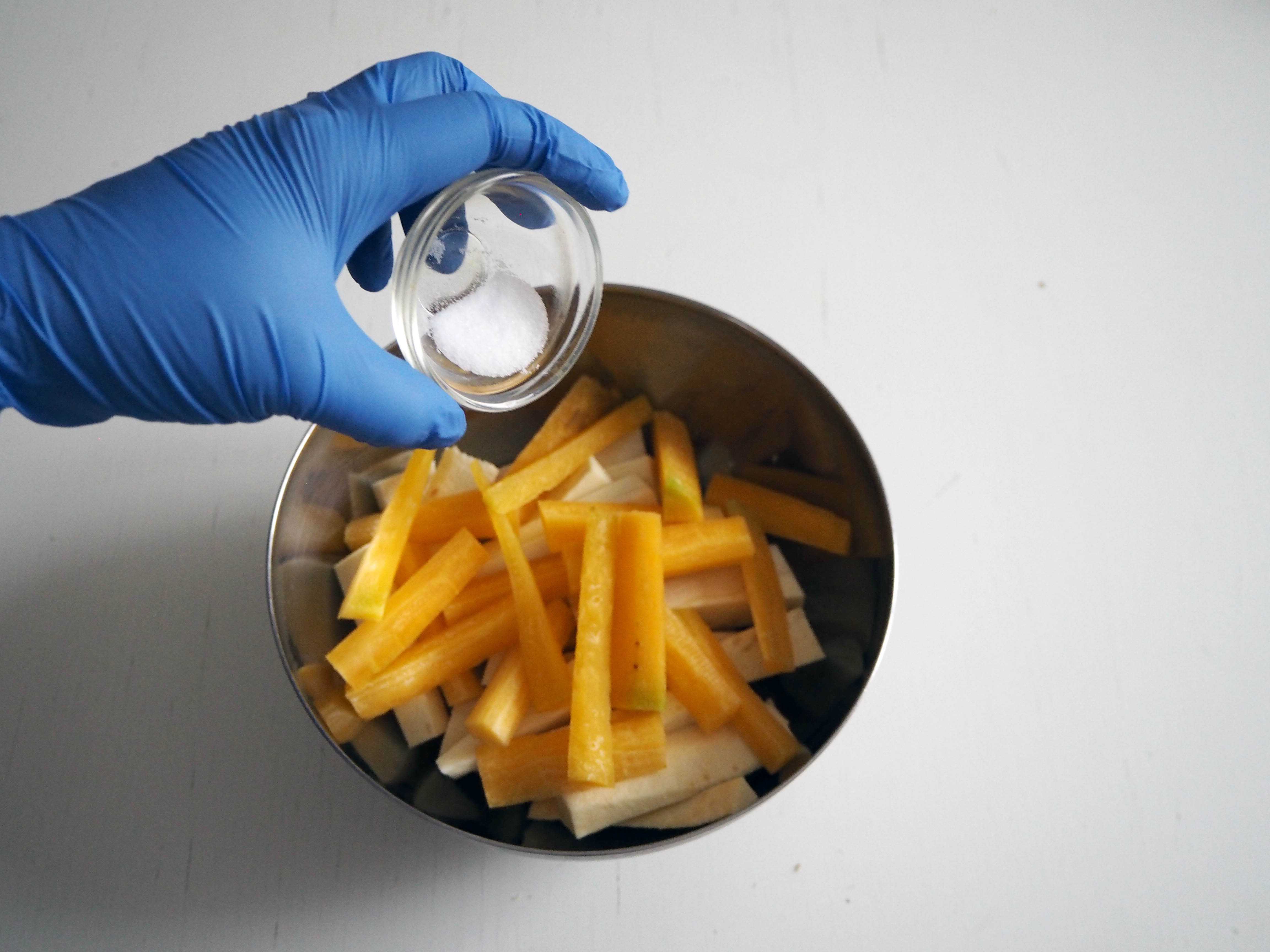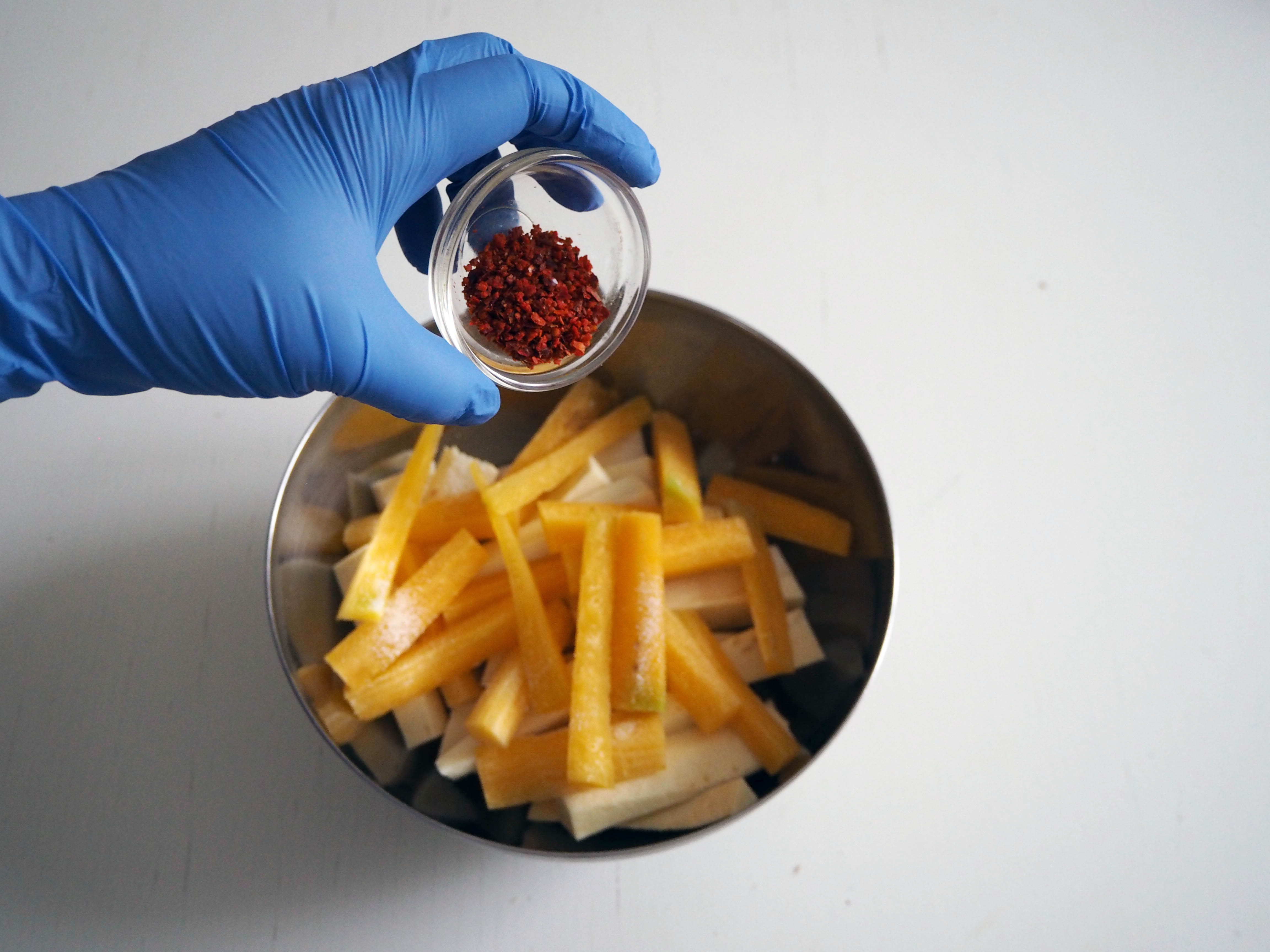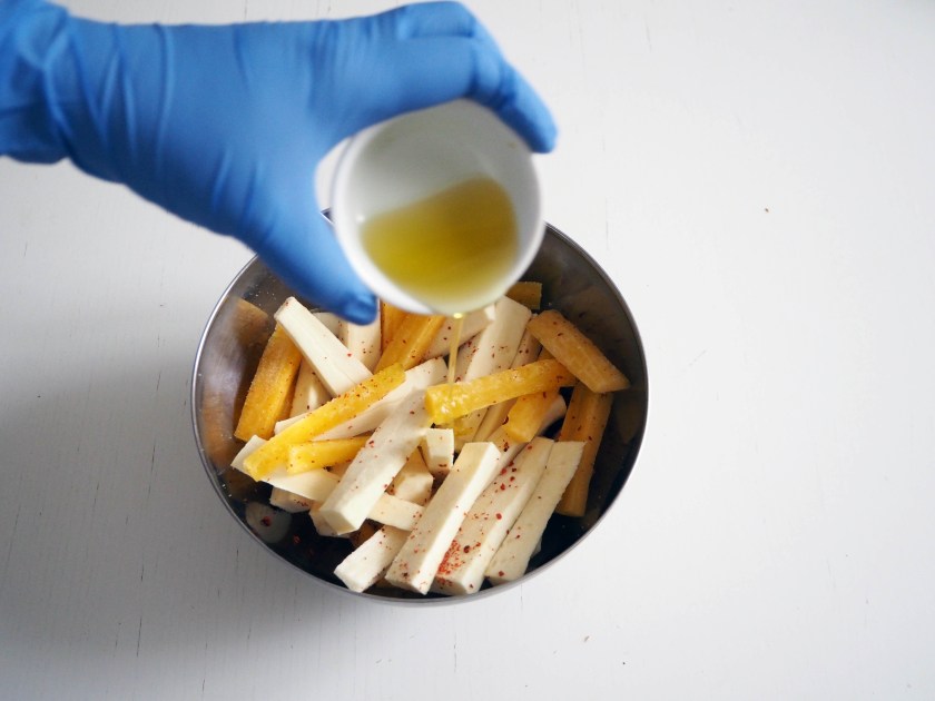 I must also explain why I have smurf hands in this blog post. The day I prepared this post, my finger joints were hurting too much (I will see the doctor soon about it). And they hurt even more every time I had to wash my hands – which happens a lot when cooking. So I used gloves to keep my fingers a bit warmer and protect. It helped quite a bit luckily!