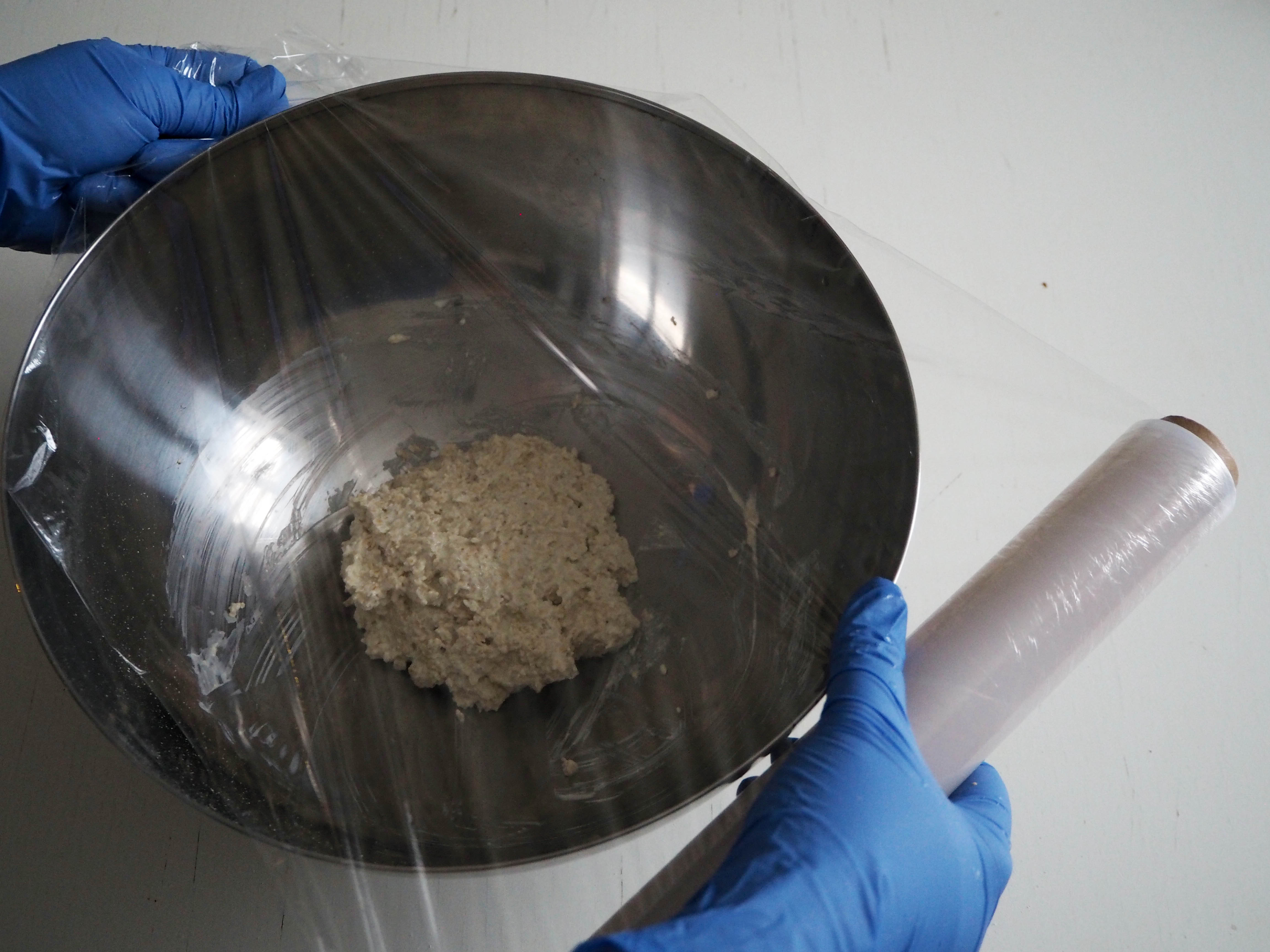 5. Add oat yoghurt and fold until you get a uniformly mixed dough ball. At this stage, if it’s too sticky, leave it as it is, you can add a little more flour later. Cover the bowl with stretch film and let it rest for 10 minutes.