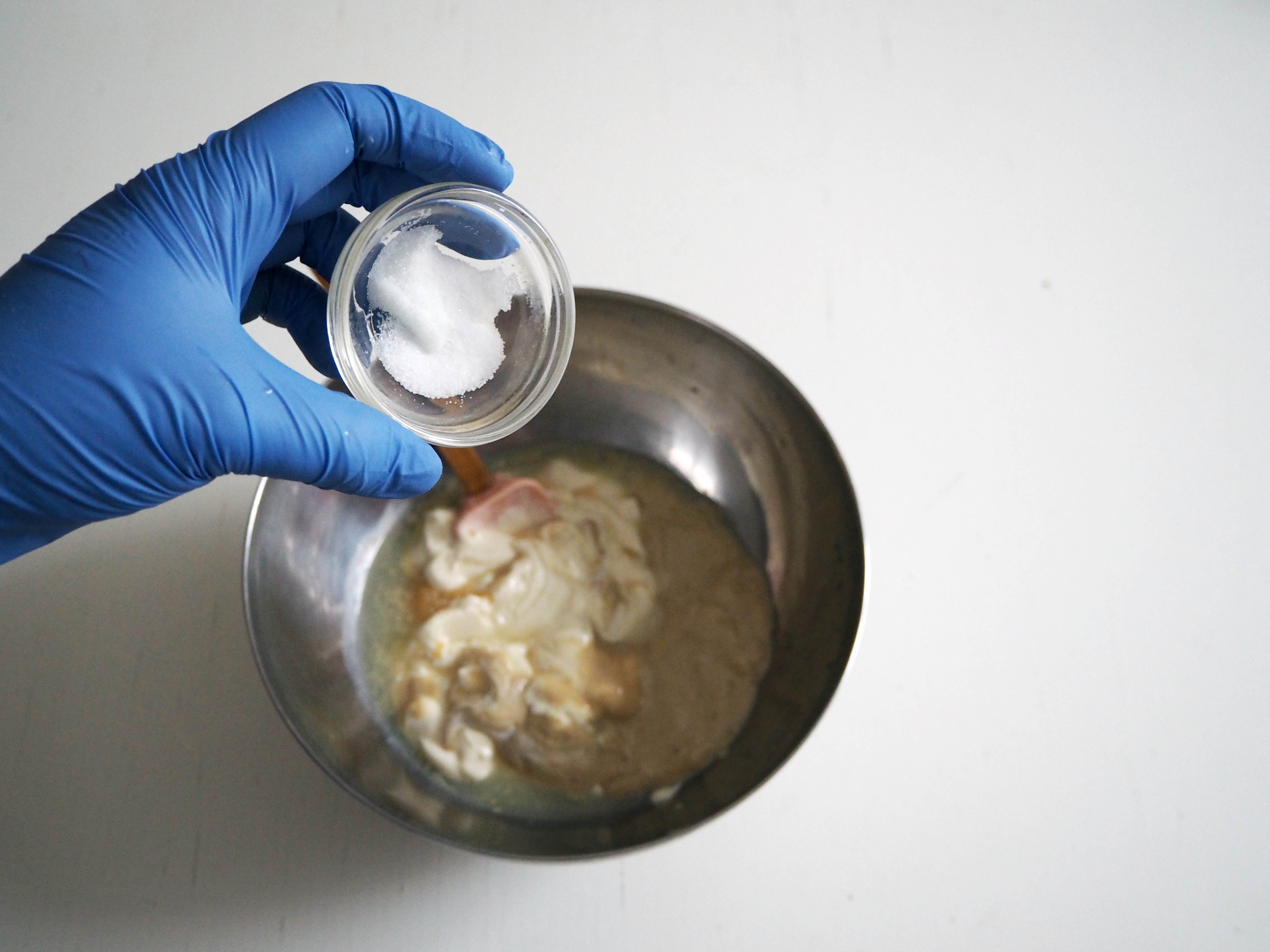 4. Put oat flour, salt and baking powder in a bowl, and whisk.