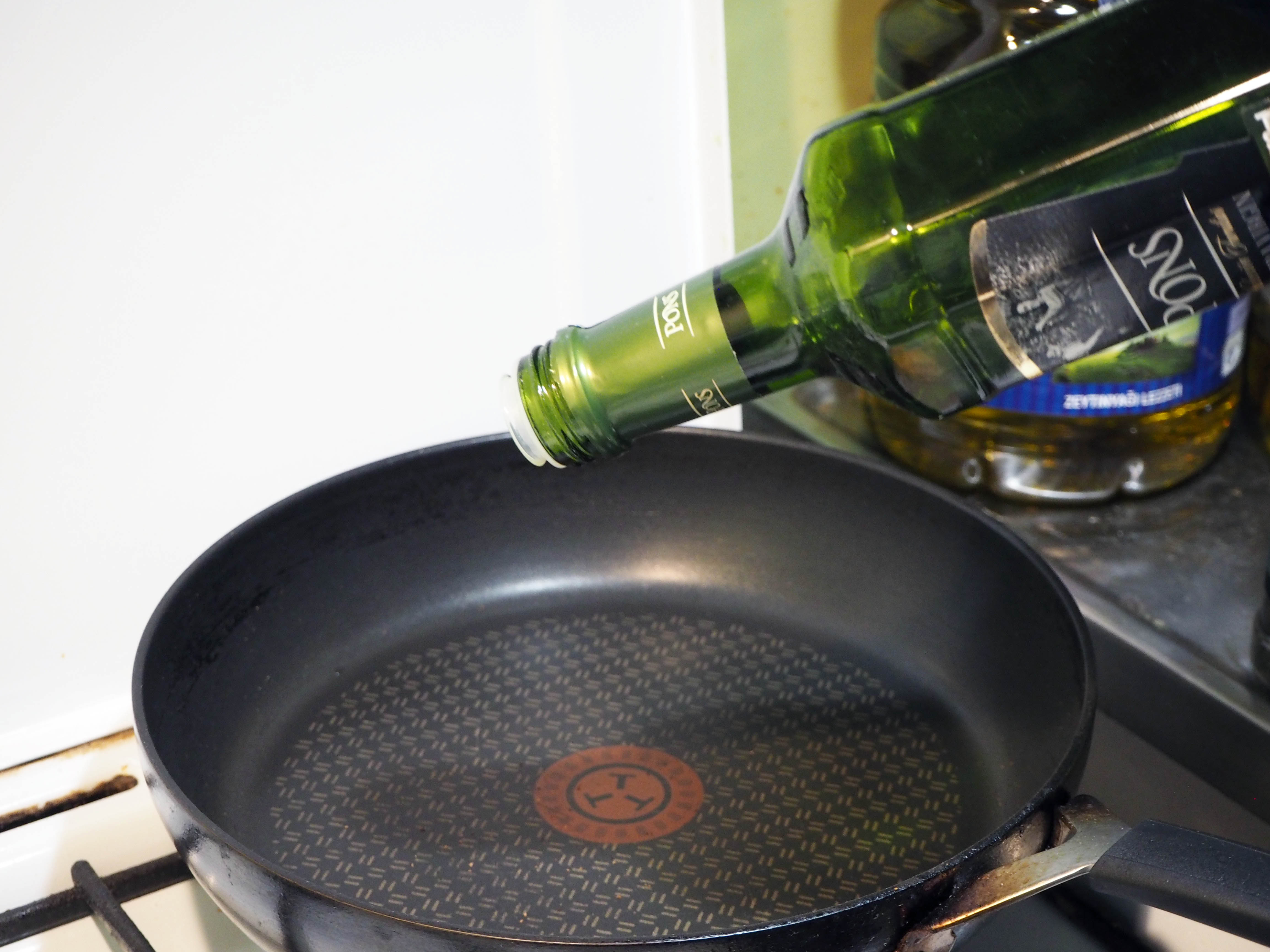 9. Put a pan on medium heat and drizzle with some olive oil (or another vegetable oil you like). Transfer the first bread onto the pan. Cook the bread thoroughly by turning it using a spatula a few times. Keep doing this for each bread ball. For me, each bread took about 5 minutes to cook.