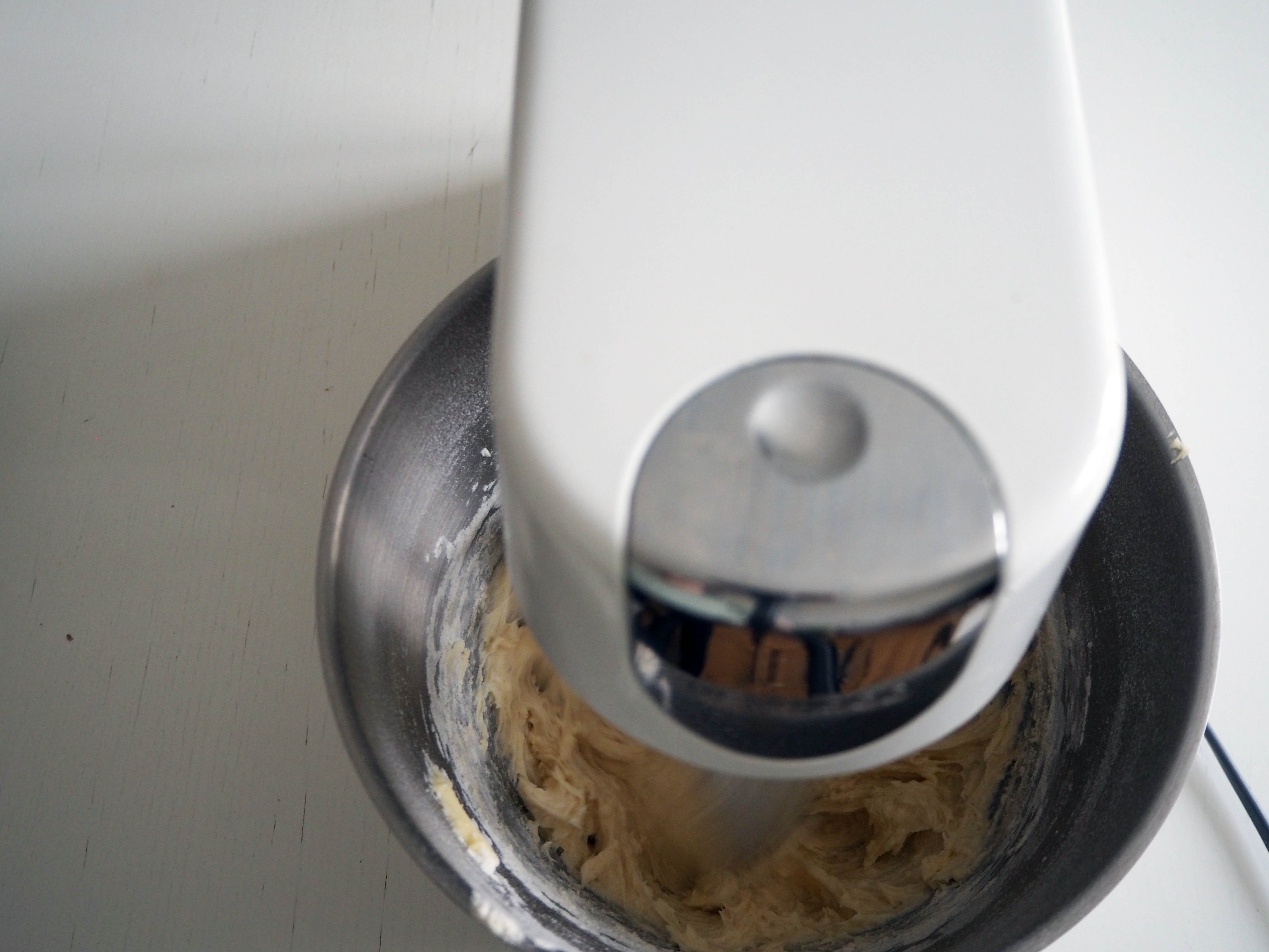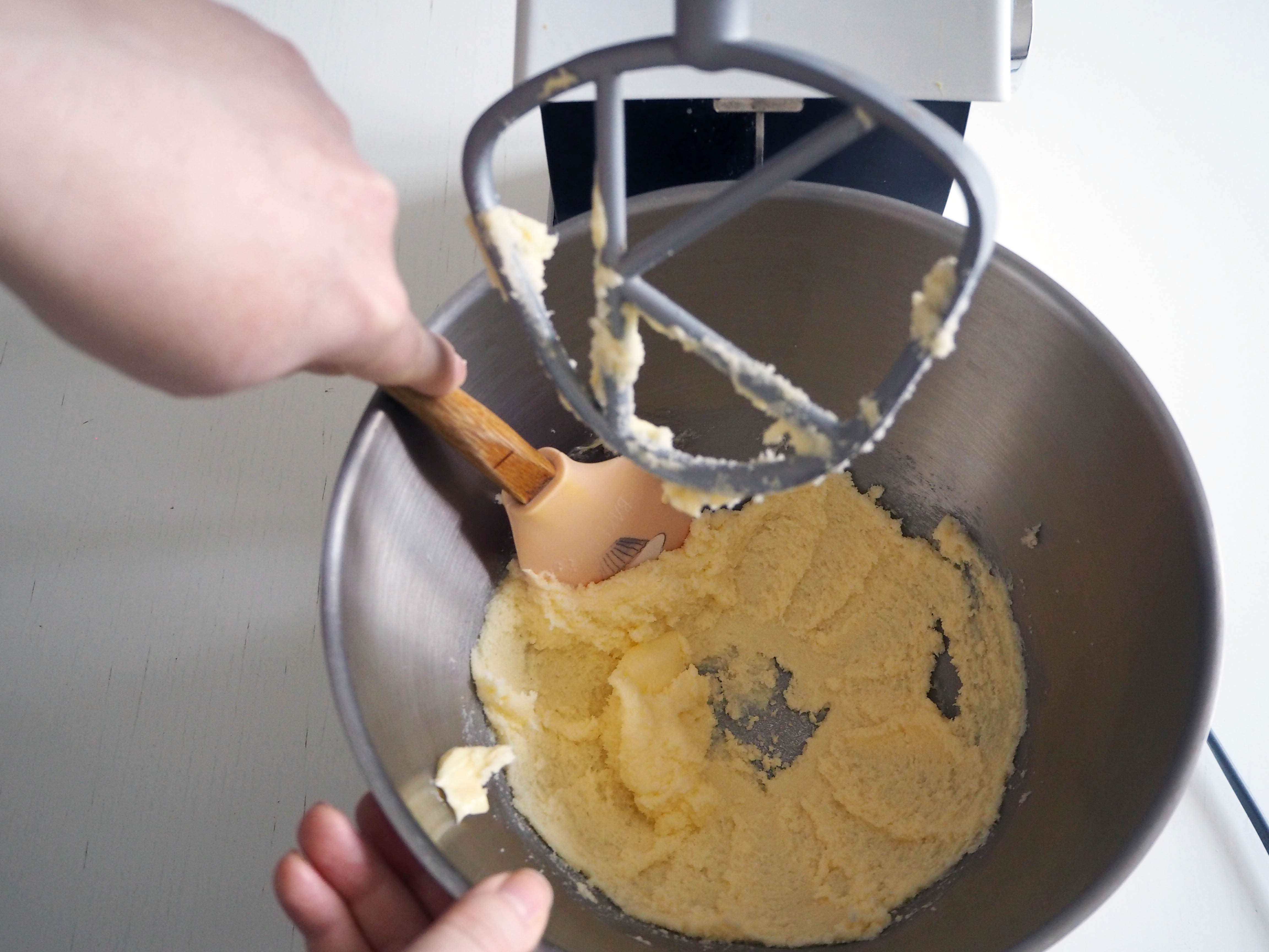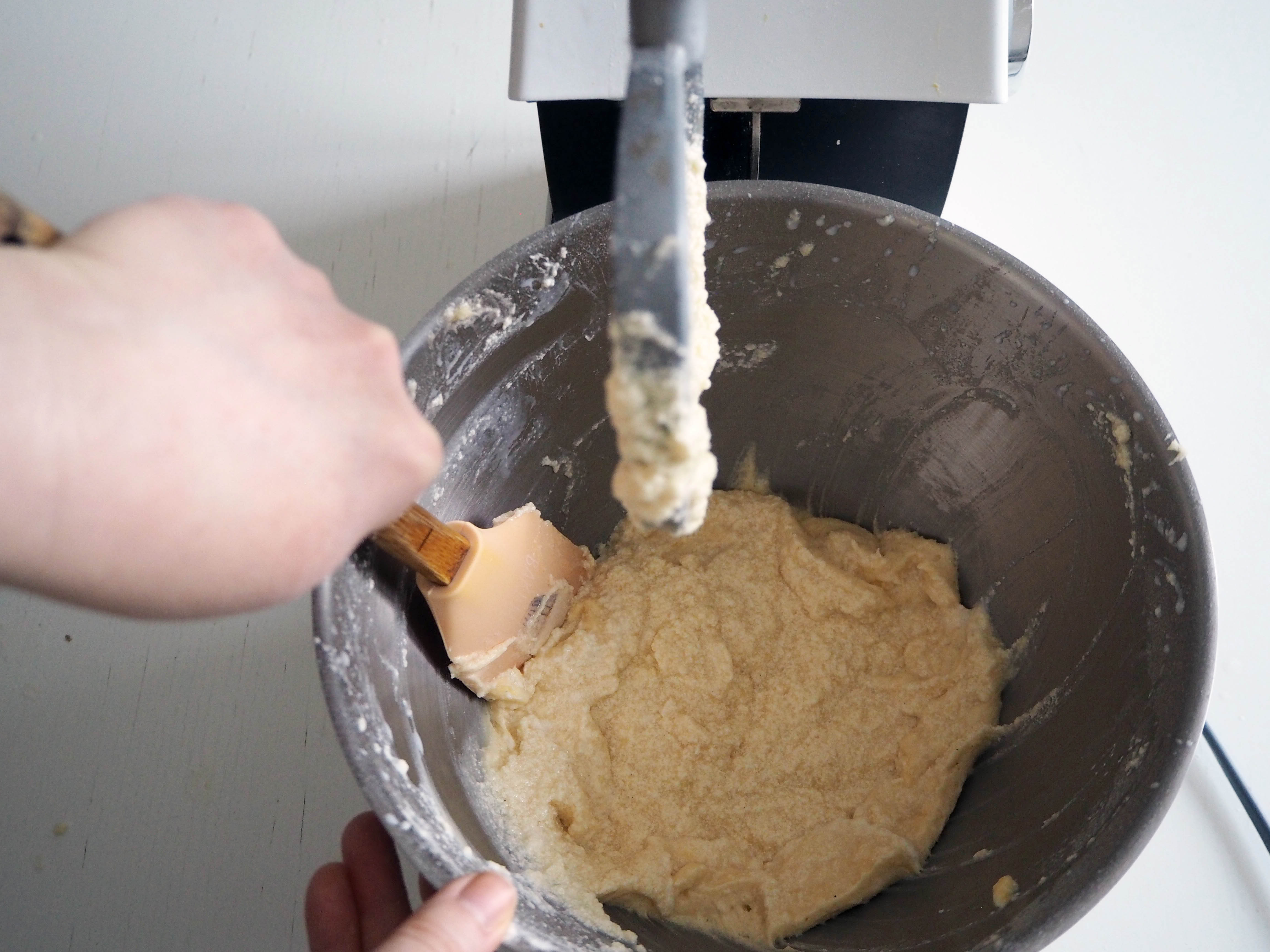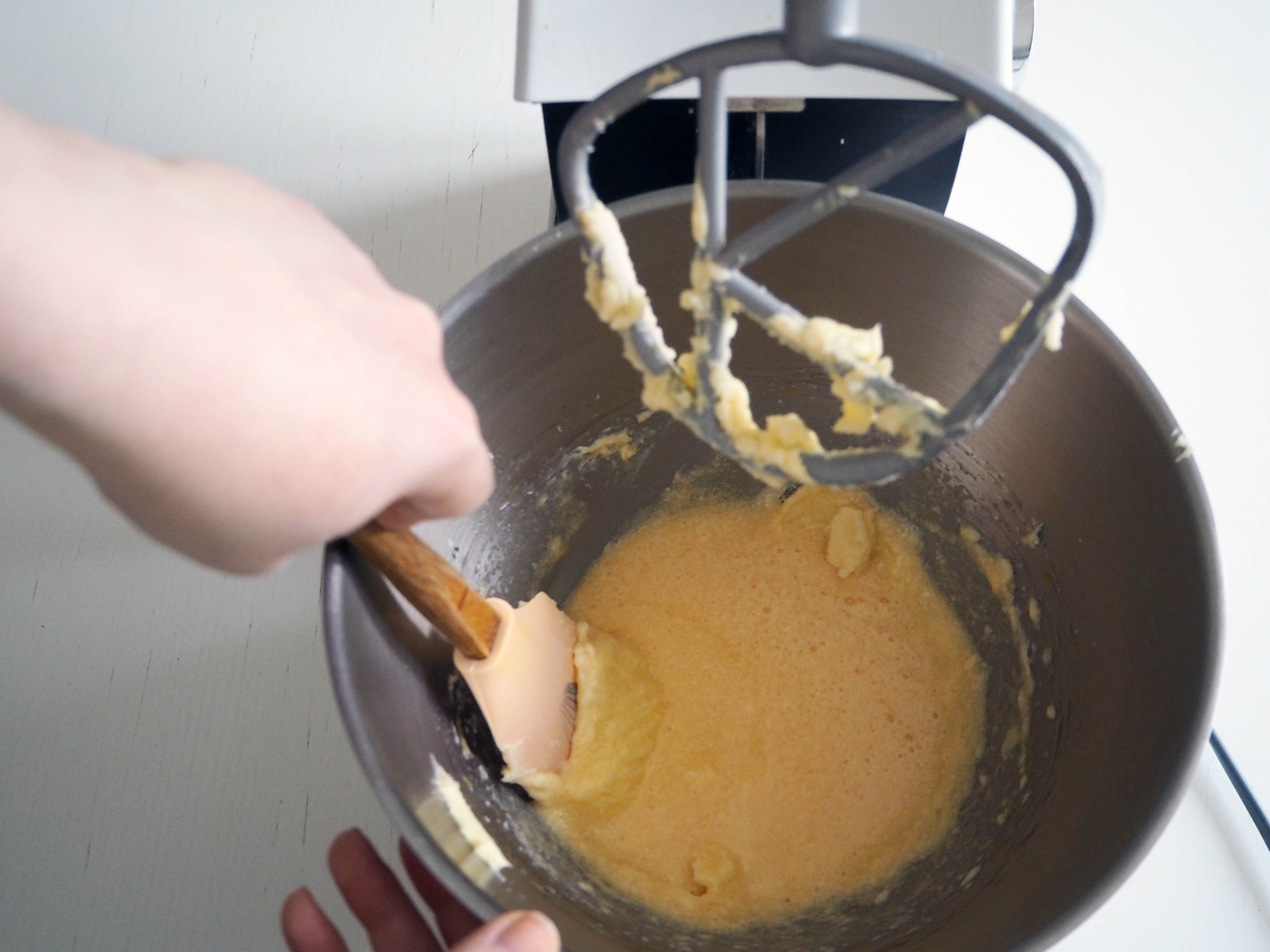 8. Add remaining flour mixture and lemon zest (which I forgot to put the picture of) and beat until everything is mixed well. Again, scrape the sides if needed.