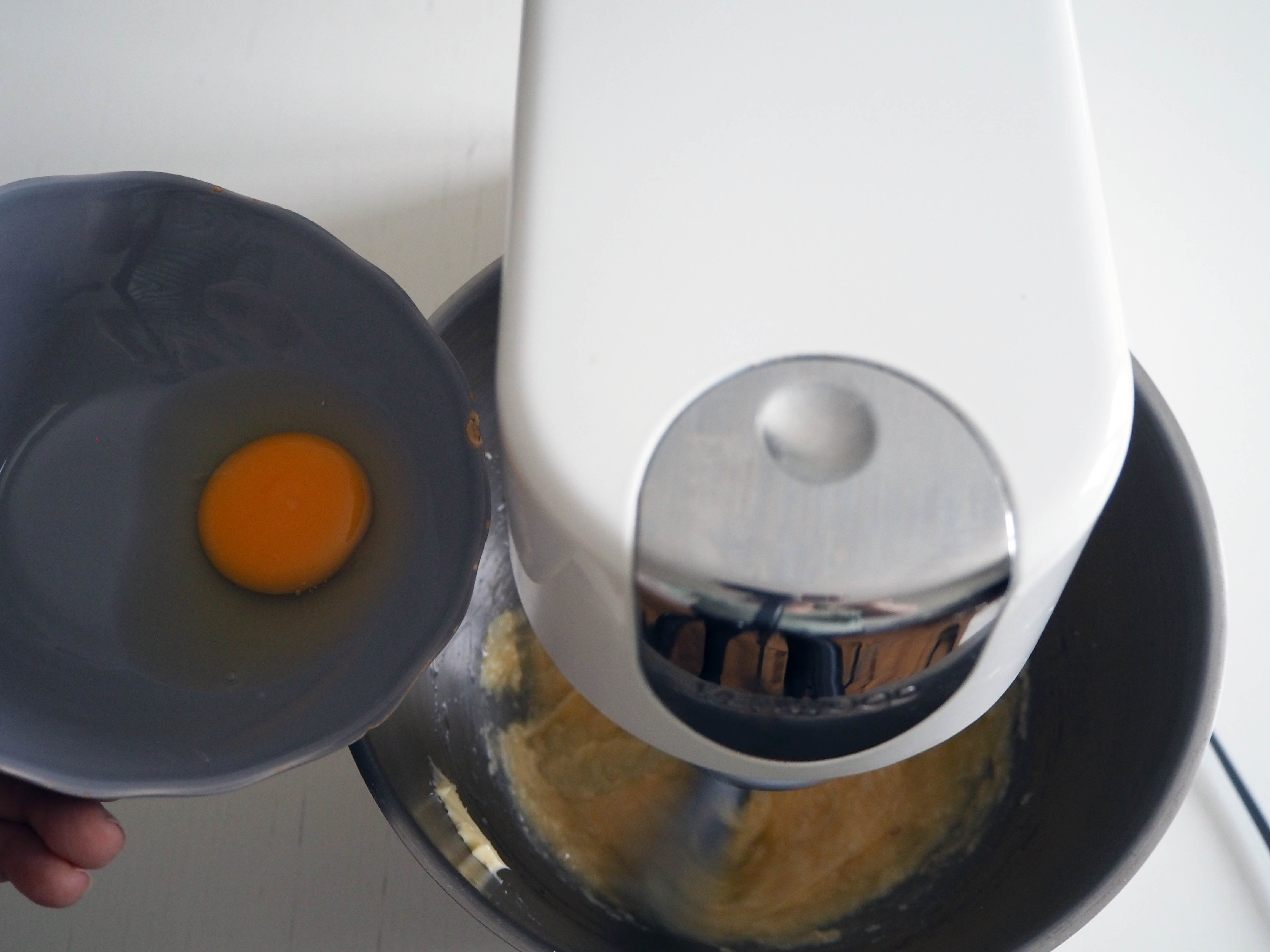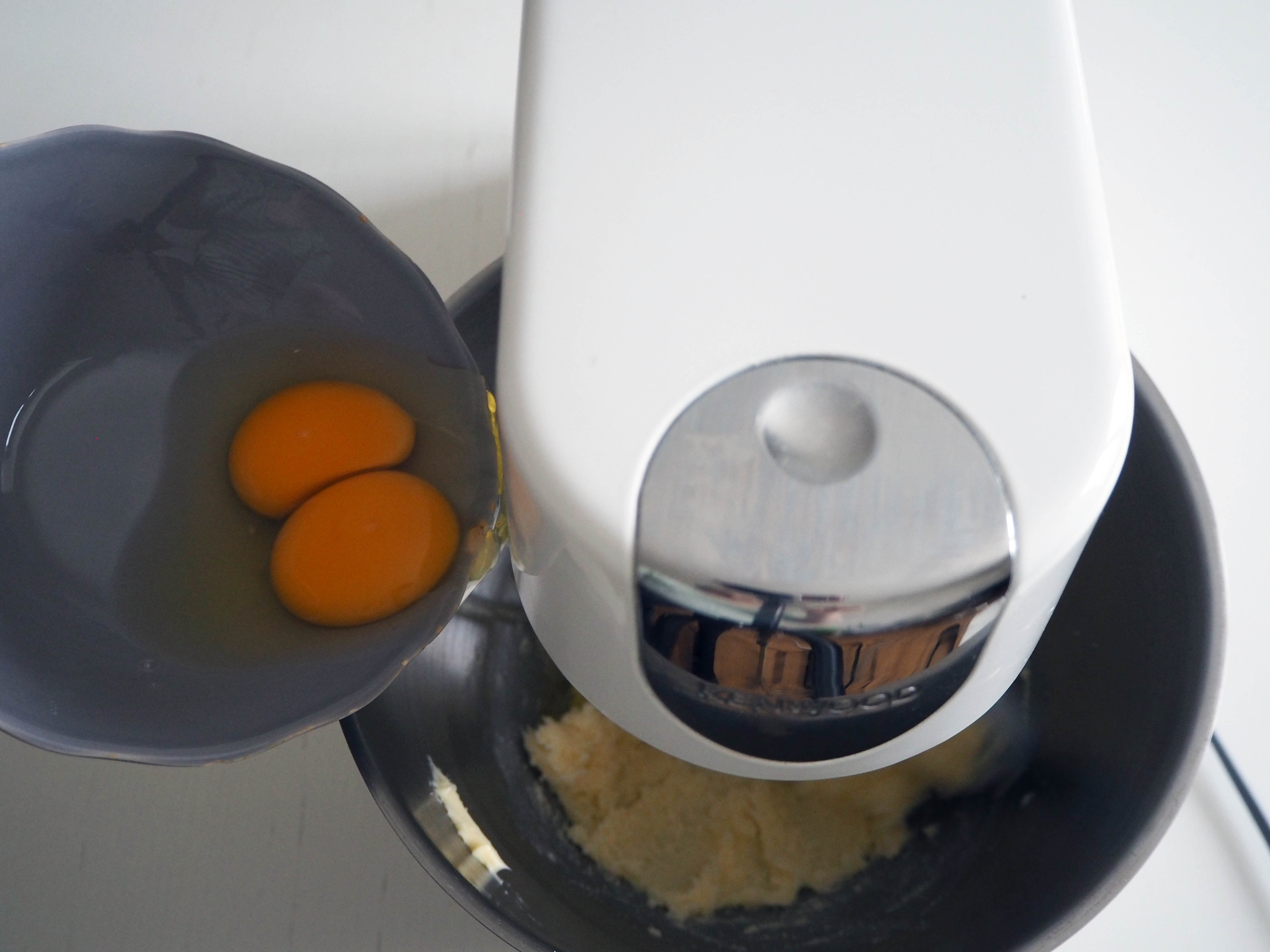 5. Add eggs, one at a time and beat well after each egg. Scrape the sides again if needed.