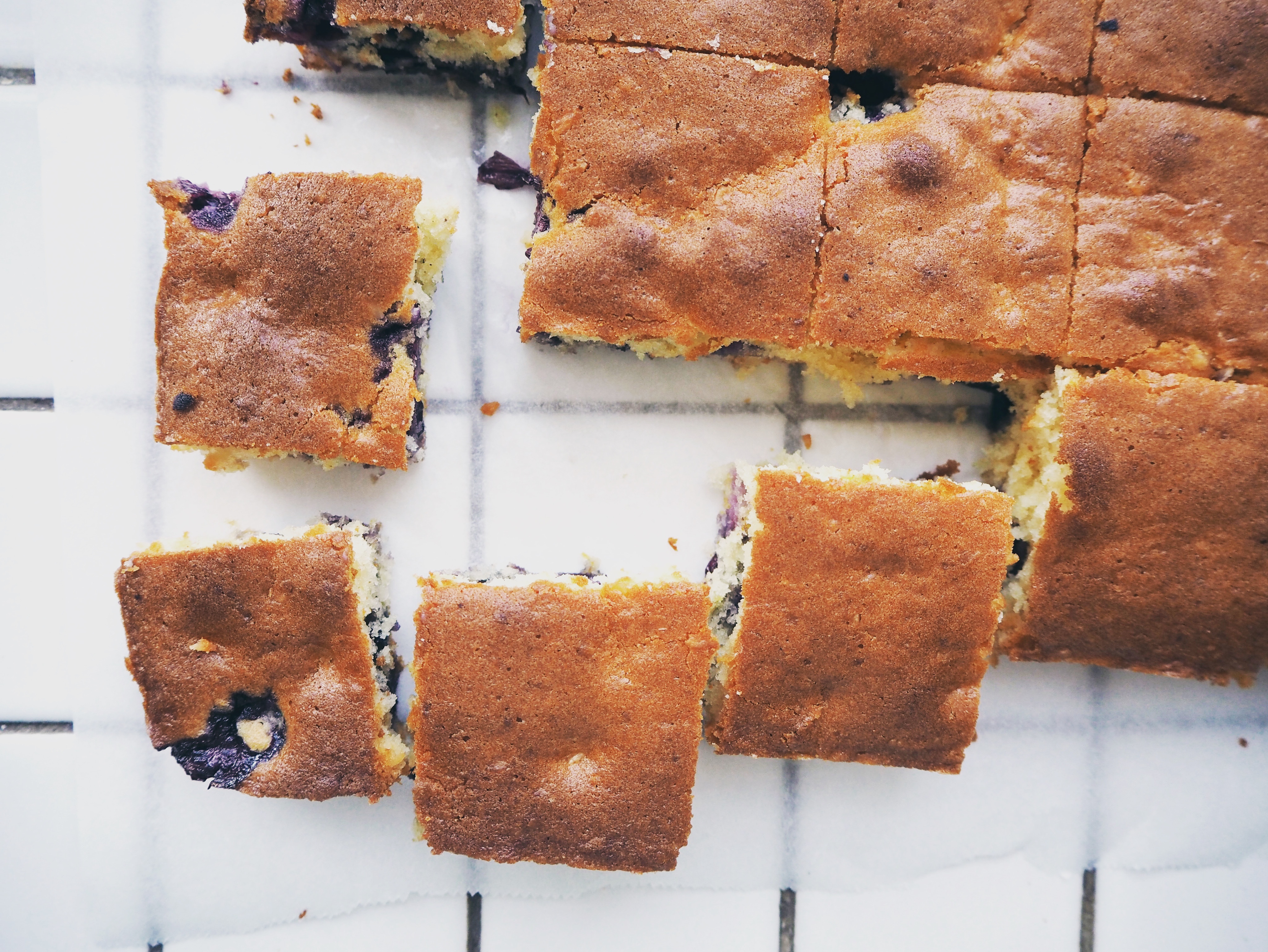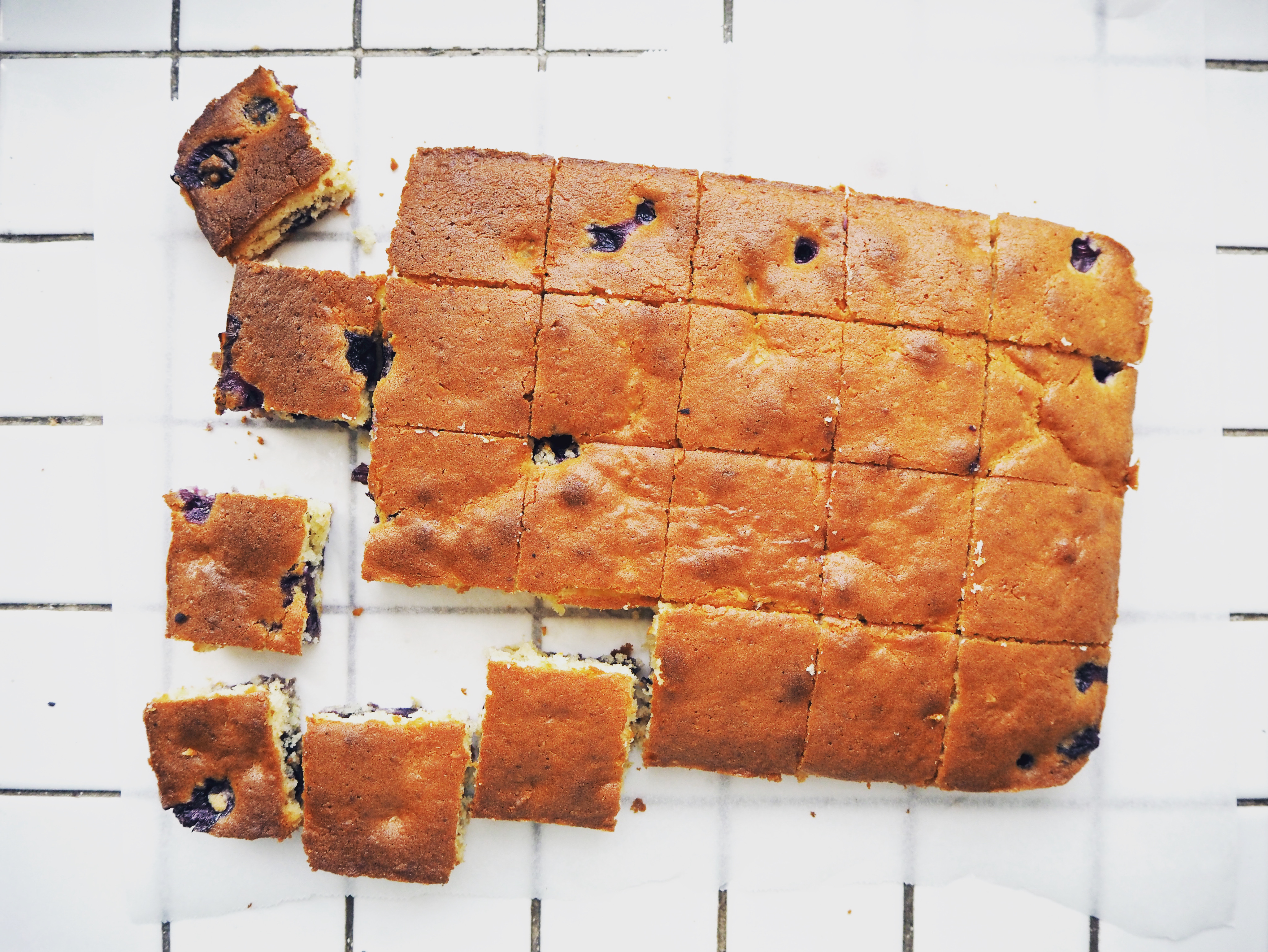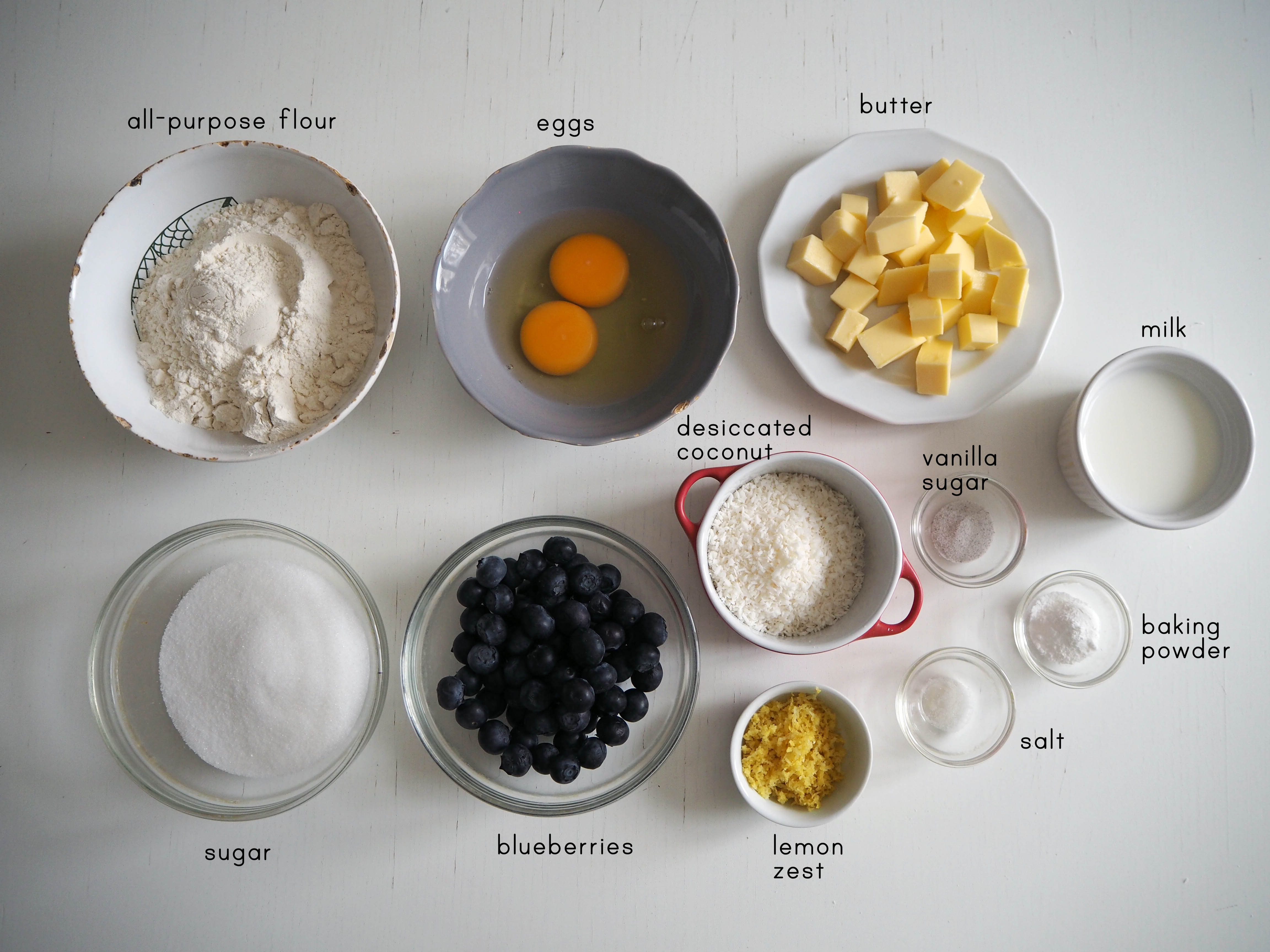 This is one of those effortless cake recipes. You mix dry ingredients on one side, whisk the others in a particular order, then mix them and finally add blueberries. That’s it. Easy peasy.