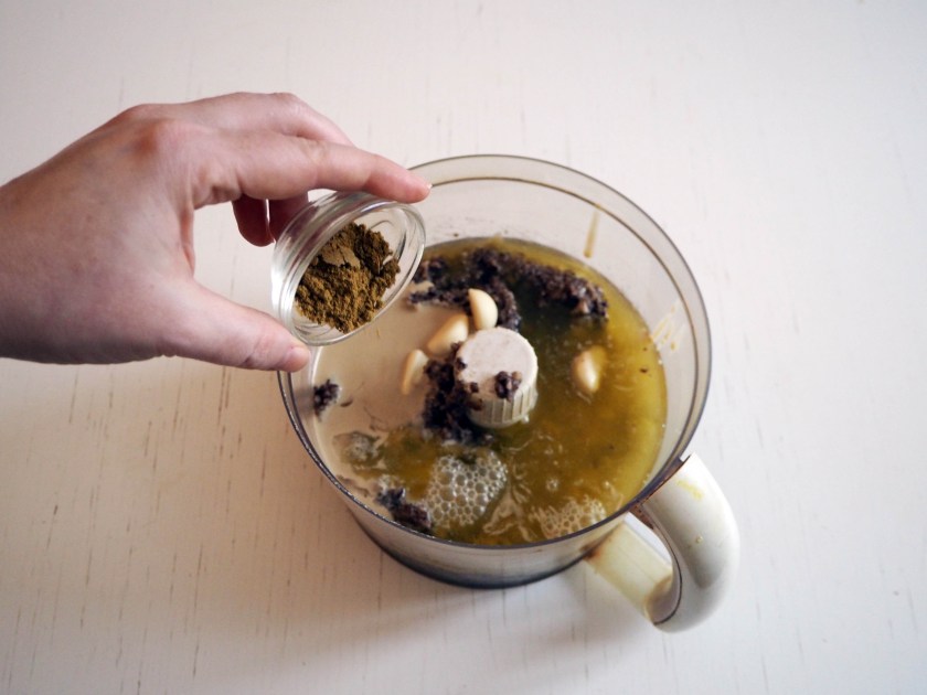This spread is similar to hummus, but it does not have chickpeas. Instead, I used crushed dried fava beans locally grown by Oma Maa food co-op (the beans were a part of the food bag I got from them in December). I’ve been thinking of what to do with them, and finally, I found a delicious use.