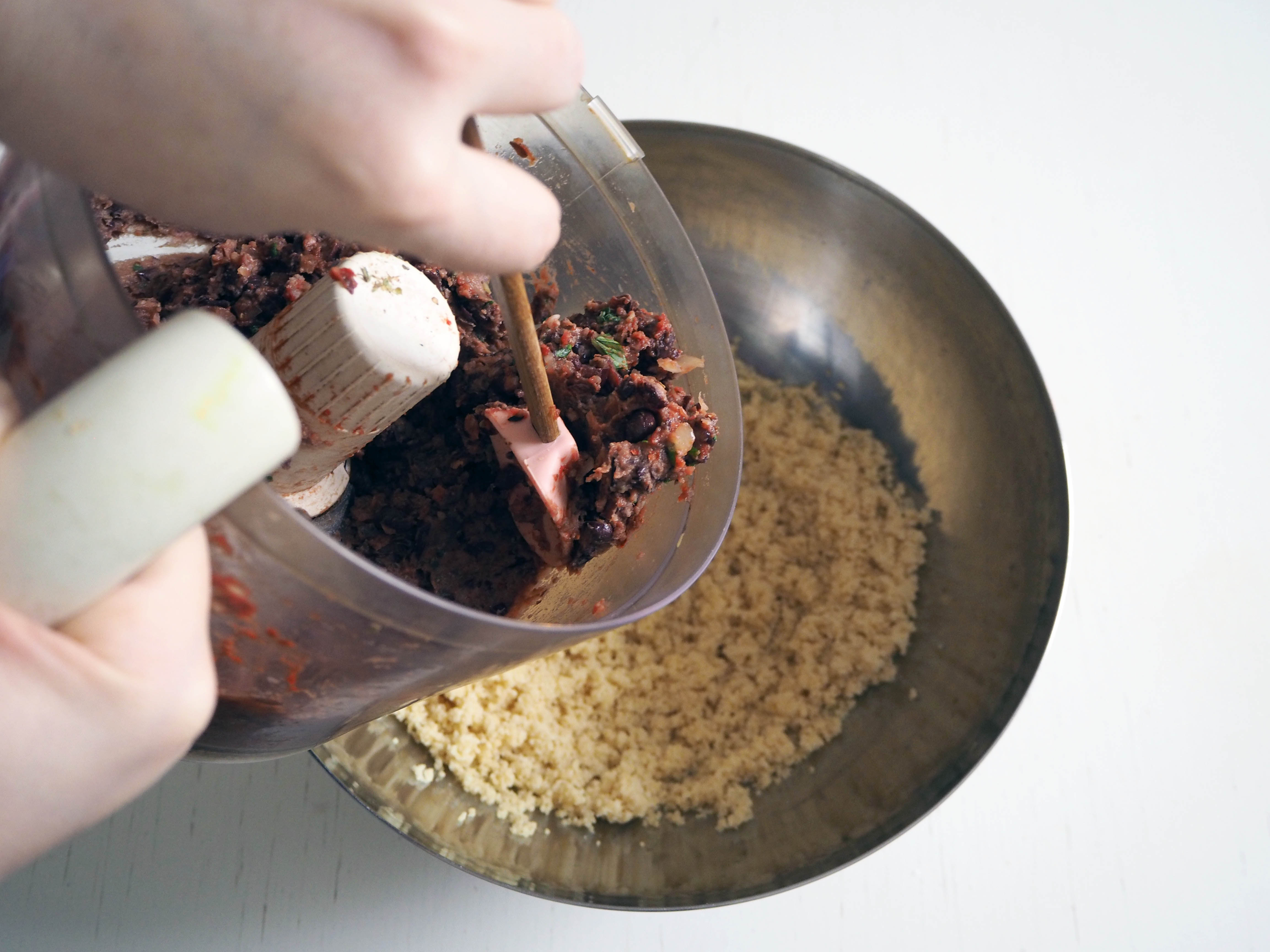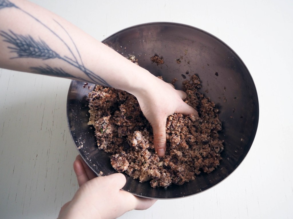 5. Add the mixture to couscous, add parmesan and knead it all using your hand until you have an evenly mixed mass.
