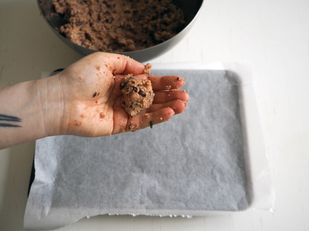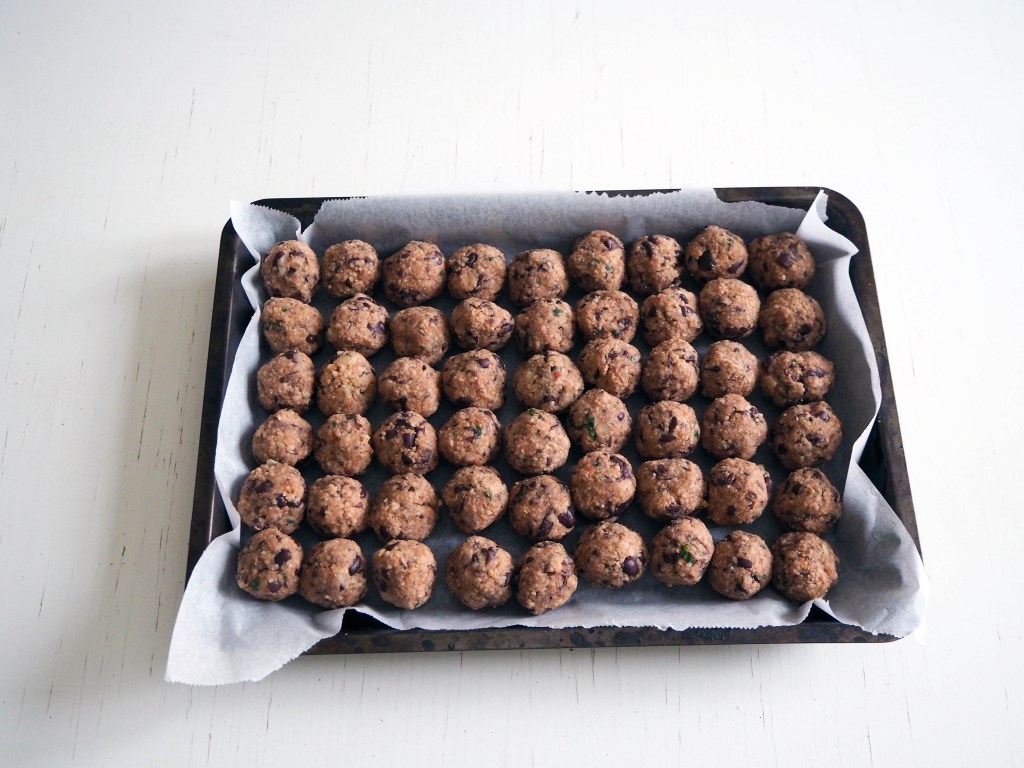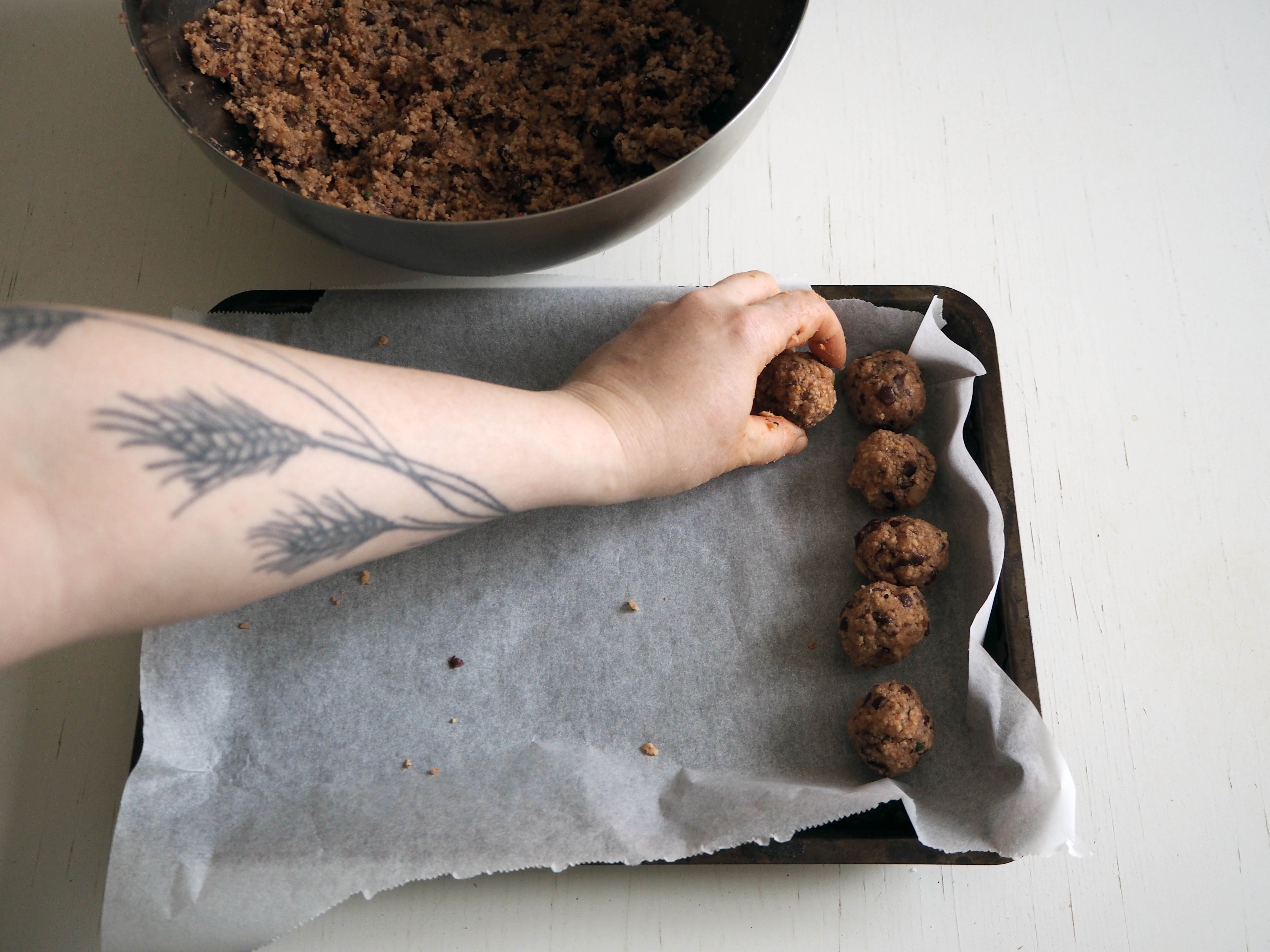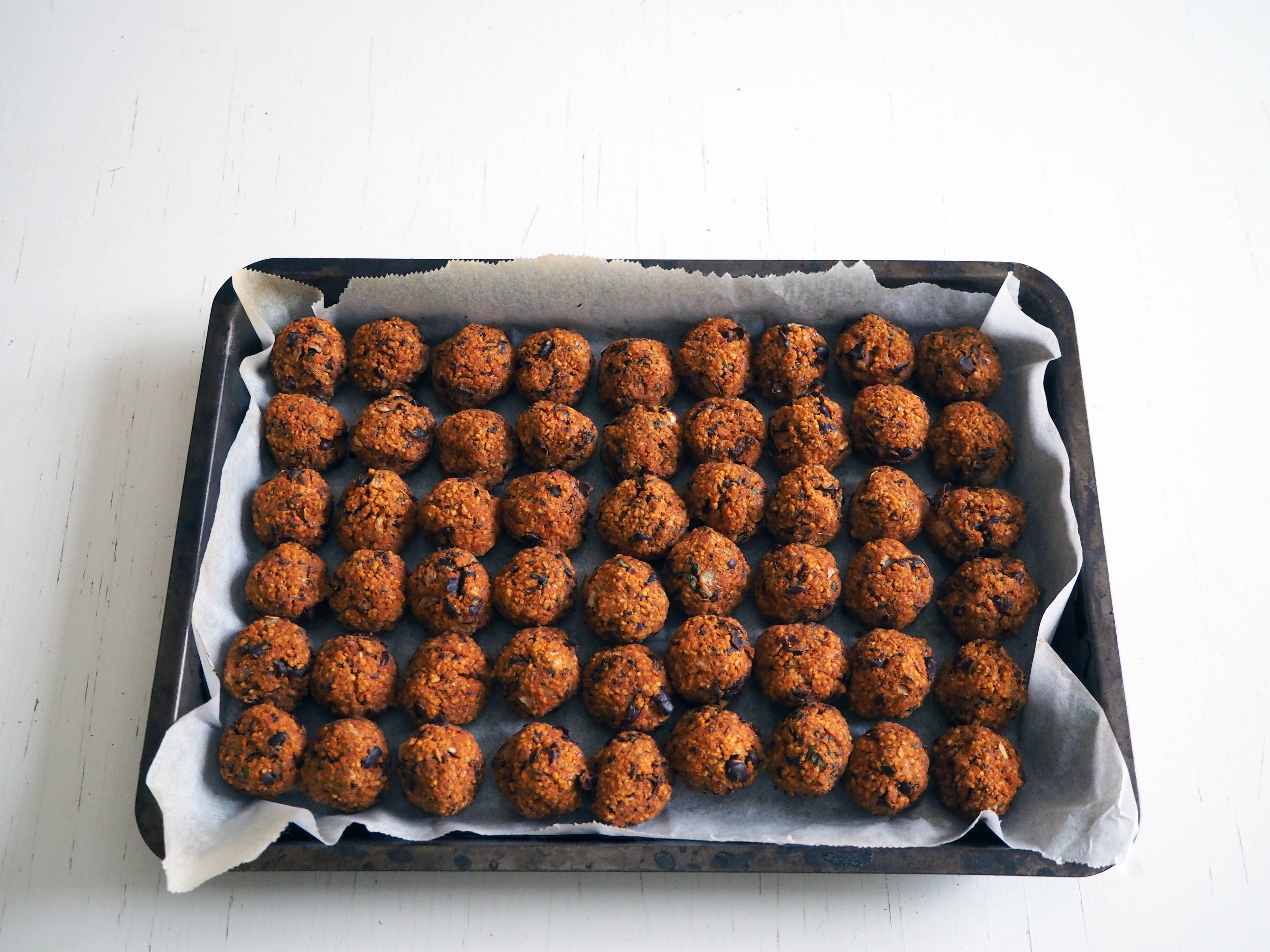 6. Take a little from the mixture and make balls, with a little smaller size than walnuts and put them on the baking paper. Bake for 22-25 minutes, or until they get browned but not burned. Let the balls cool down a little, and then they will be ready to eat. I usually add one more step before eating the balls, which makes them crispier and more delicious. It is the same step as step 10 in this recipe: cauliflower and couscous balls I highly recommend!