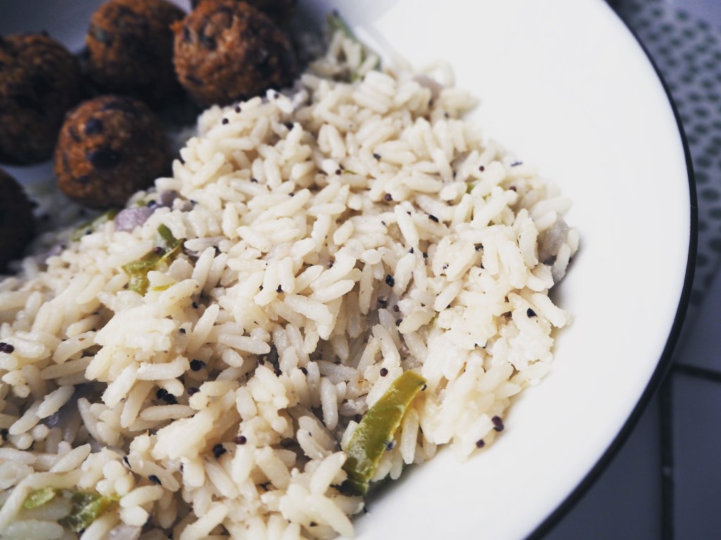 I love making bean or vegetable balls. They are some of the best lunch or dinner dishes for a vegetarian. They are filling enough themselves, but in this menu recipe, I also wanted to add one of my favourite rice pilaf dishes, the one with coconut milk.