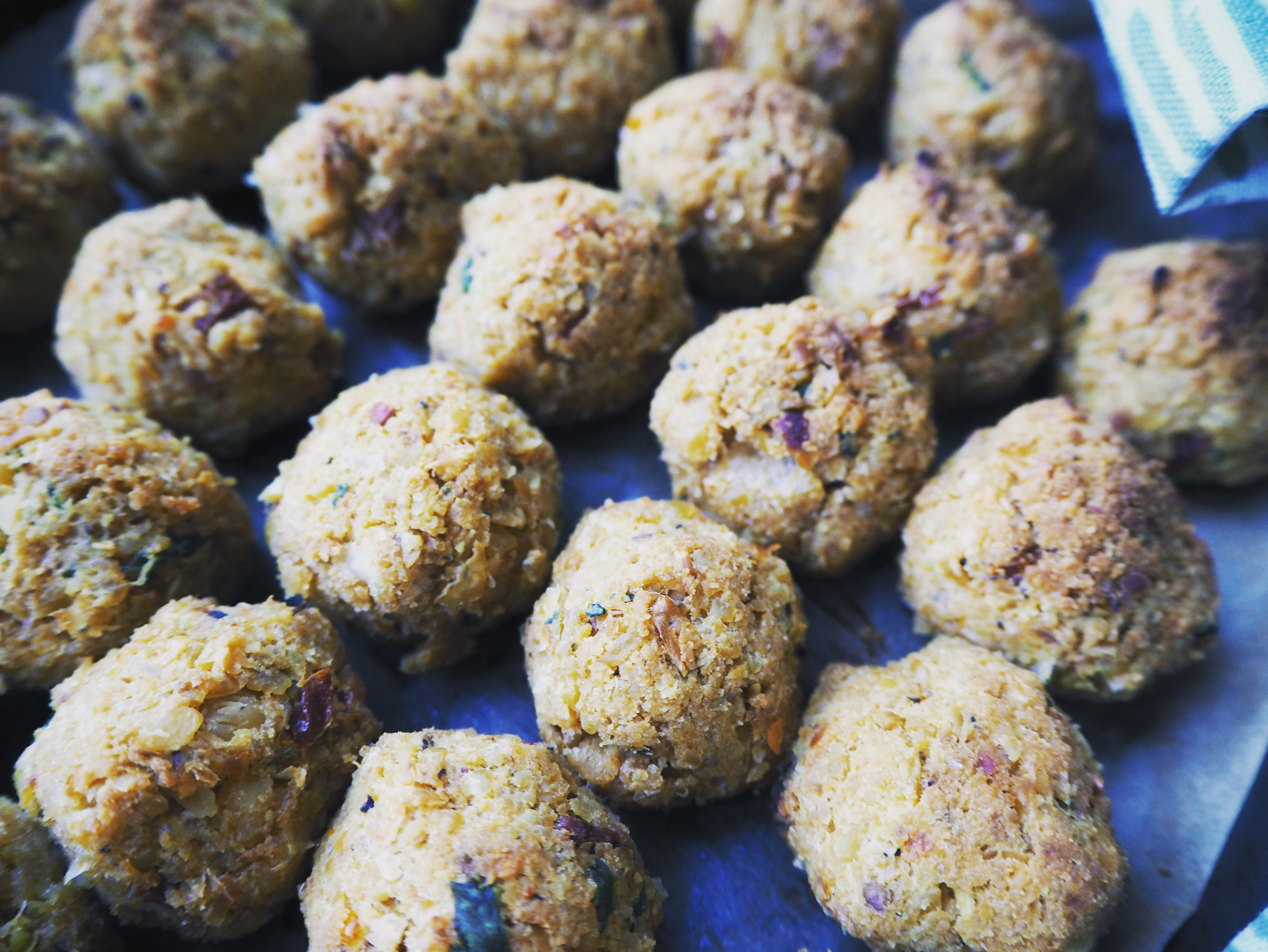 - Preheat the oven to 200C. Put a baking paper on an oven tray (or two trays, up to you: I bake all the balls in one batch, but you may need to prepare more than one tray if your oven is smaller).