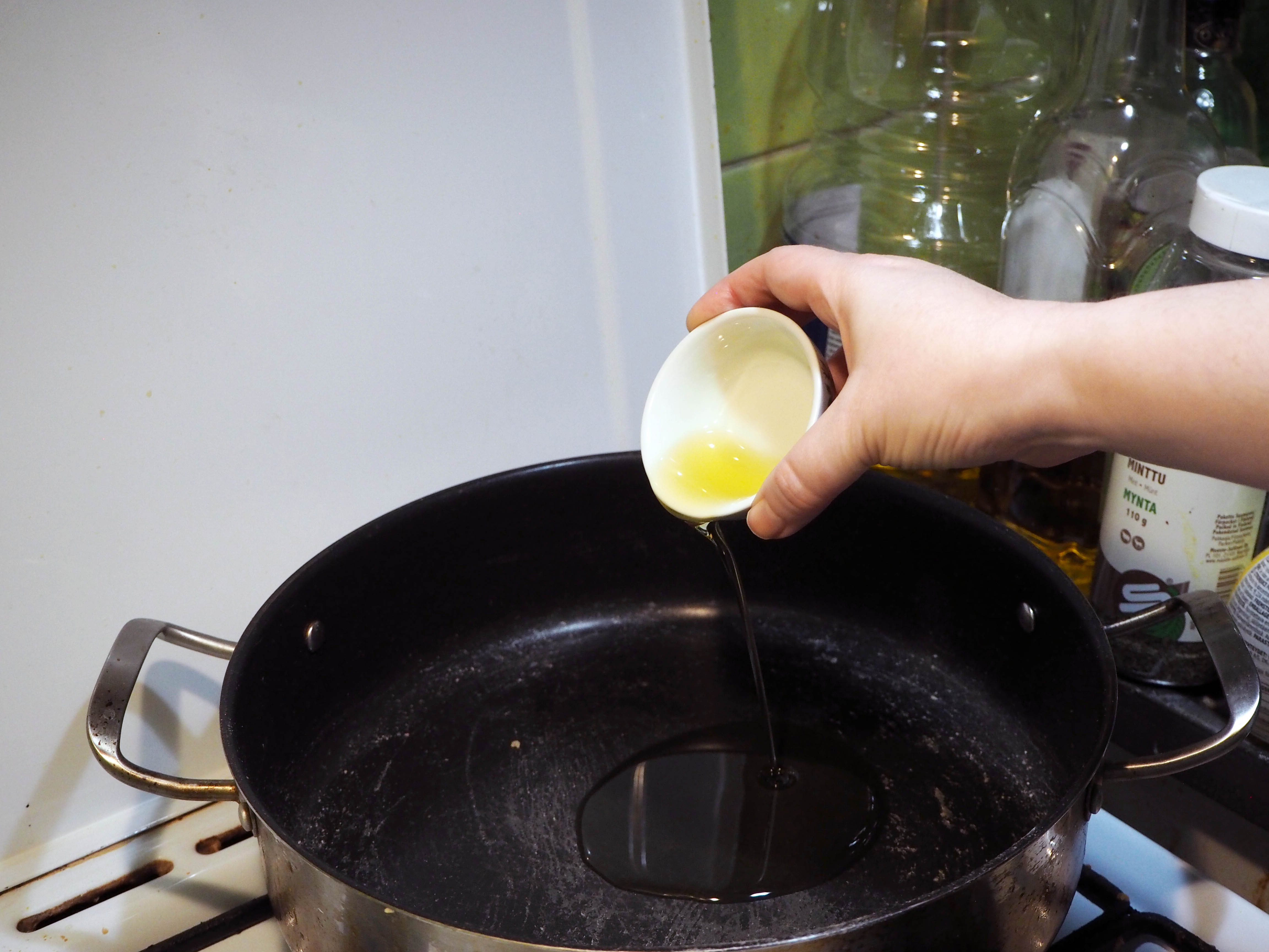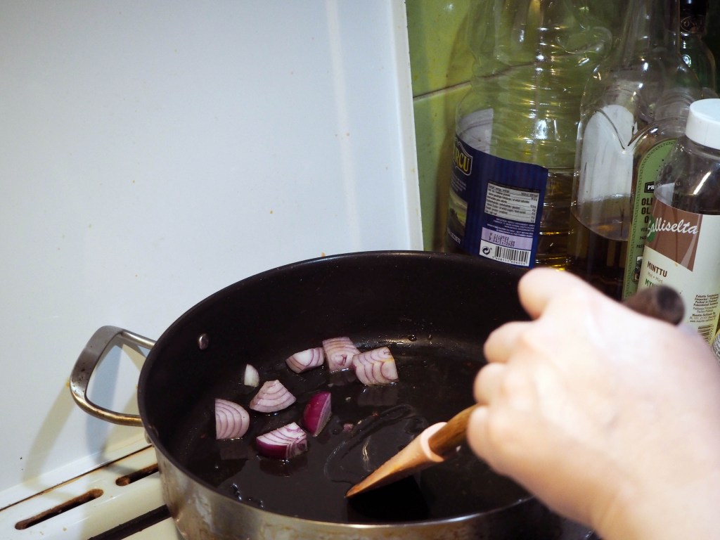 4. In the same pot, put 2 tbsp olive oil and red onion on medium-high heat and saute for a few minutes.