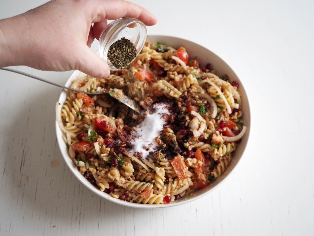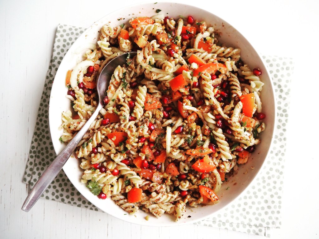 Vegan Monday: Pasta Salad With Tomatoes, Onions, Walnuts, Pomegranate And More