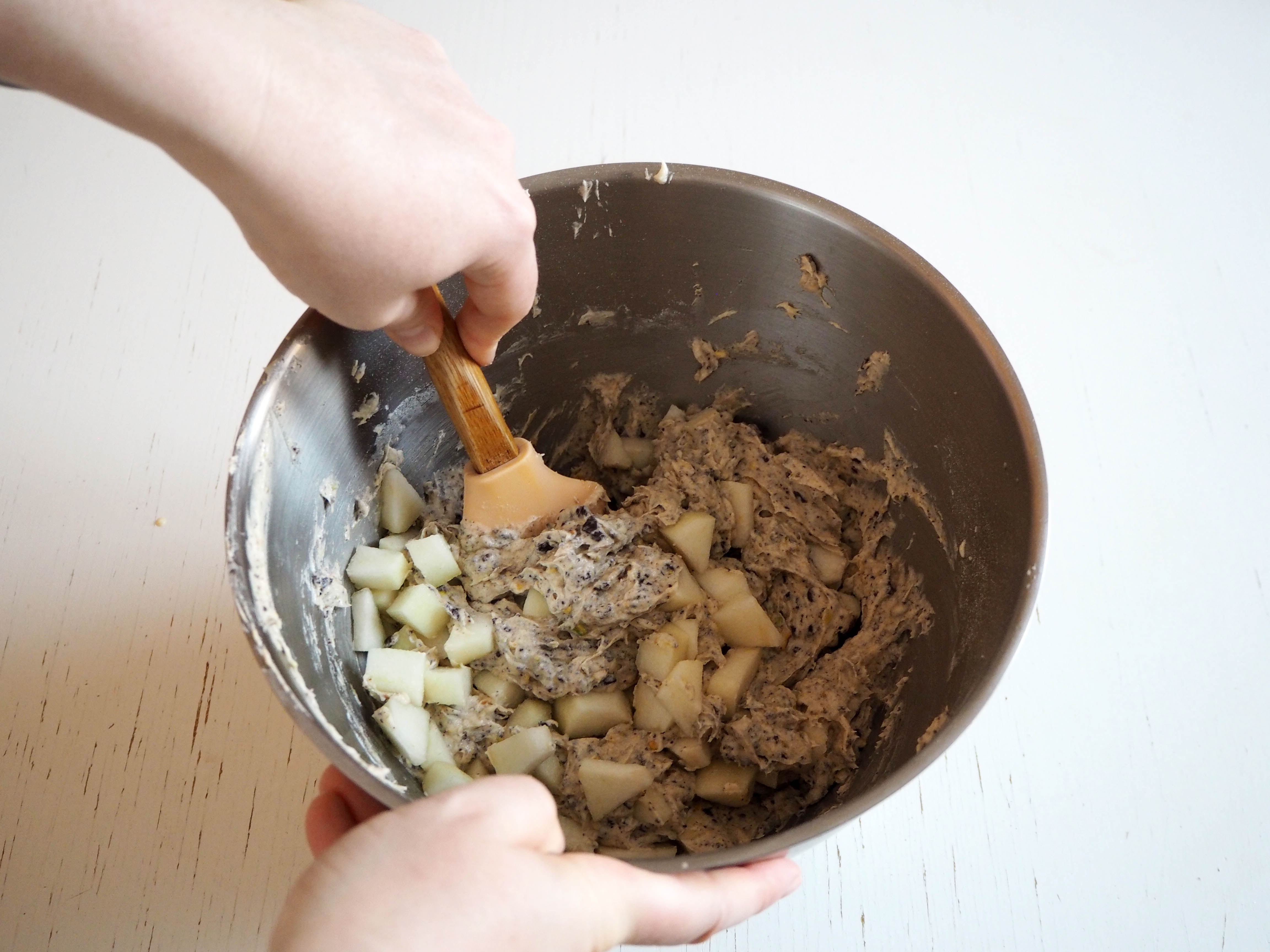 Any nuts together with chocolate is a win. And so is this cake. But it’s not the nut and chocolate combo that makes this cake divine – there is also the moisture that comes with pear!