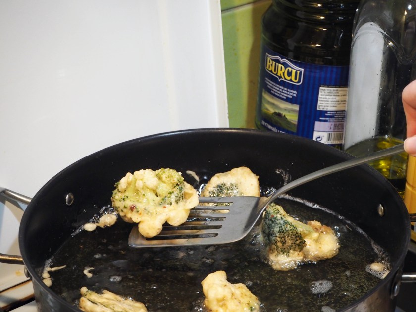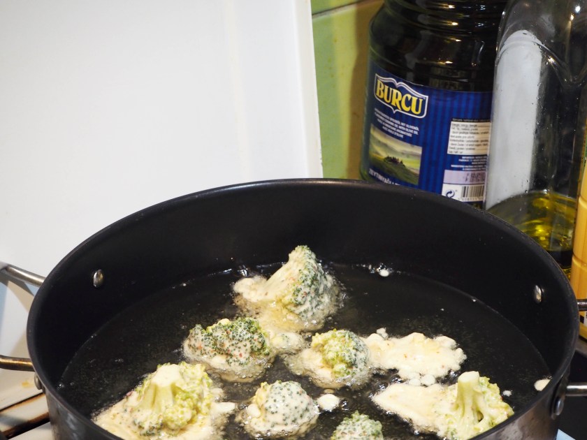 All you need to do is to cook the broccoli just a little. You can even do that the night before and take it out of the fridge when you want to fry. Just don’t forget to cook it for a really short time, only until it gets a bit tender, that’s it. If you boil for too long and make the broccoli too soft, it will crumble when you want to coat and fry it.