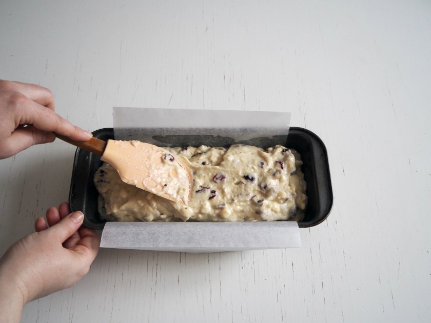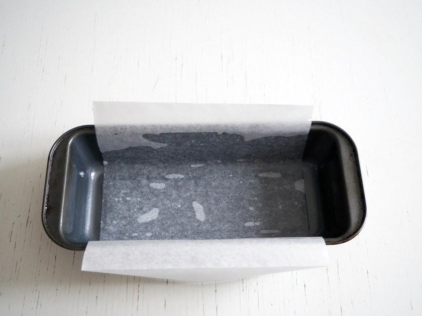 - Preheat the oven to 200C. Grease the loaf pan and put a baking paper inside to cover the base and two sides.