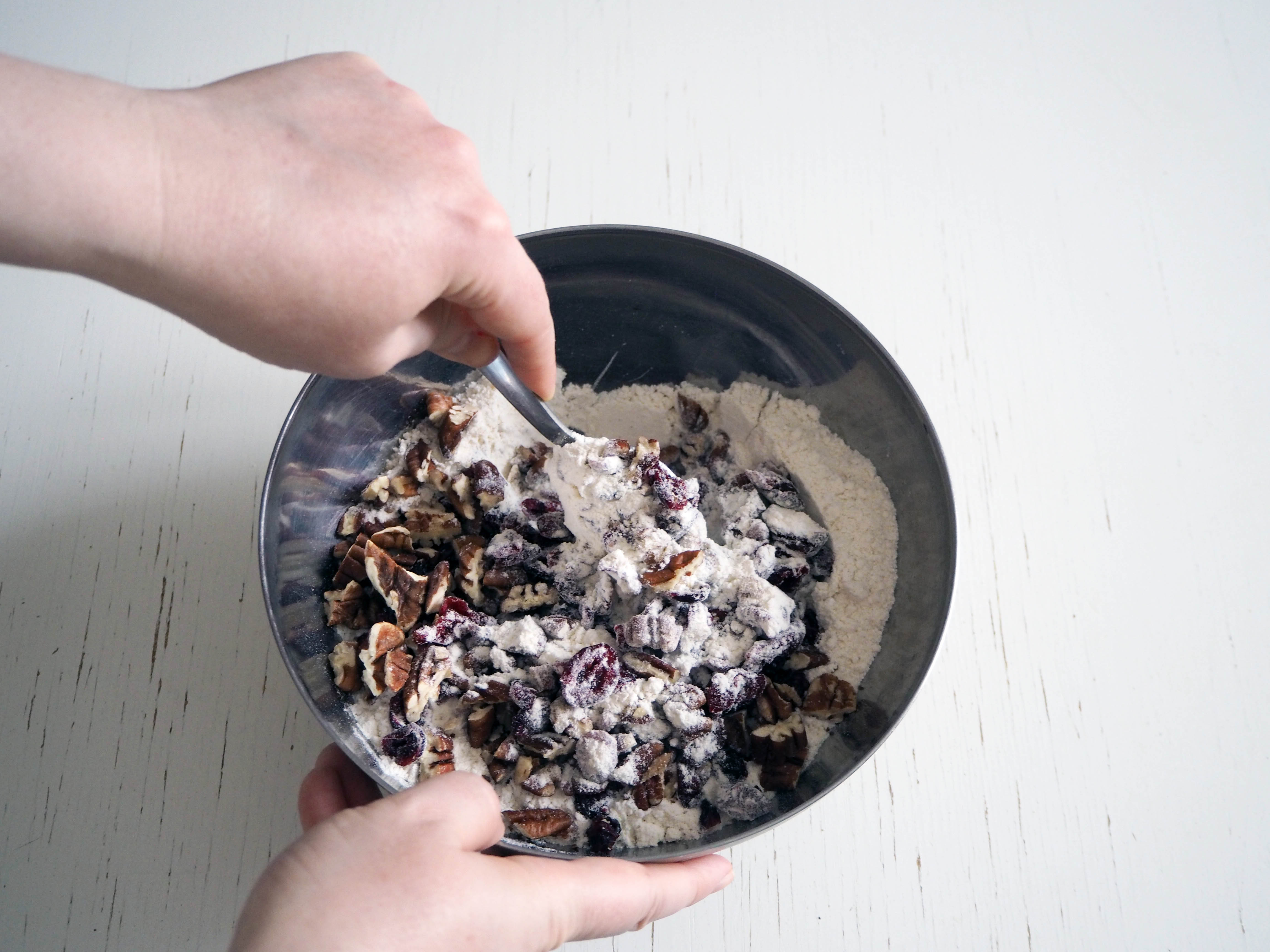 2. In a medium bowl, put the first three ingredients and mix with a spoon.