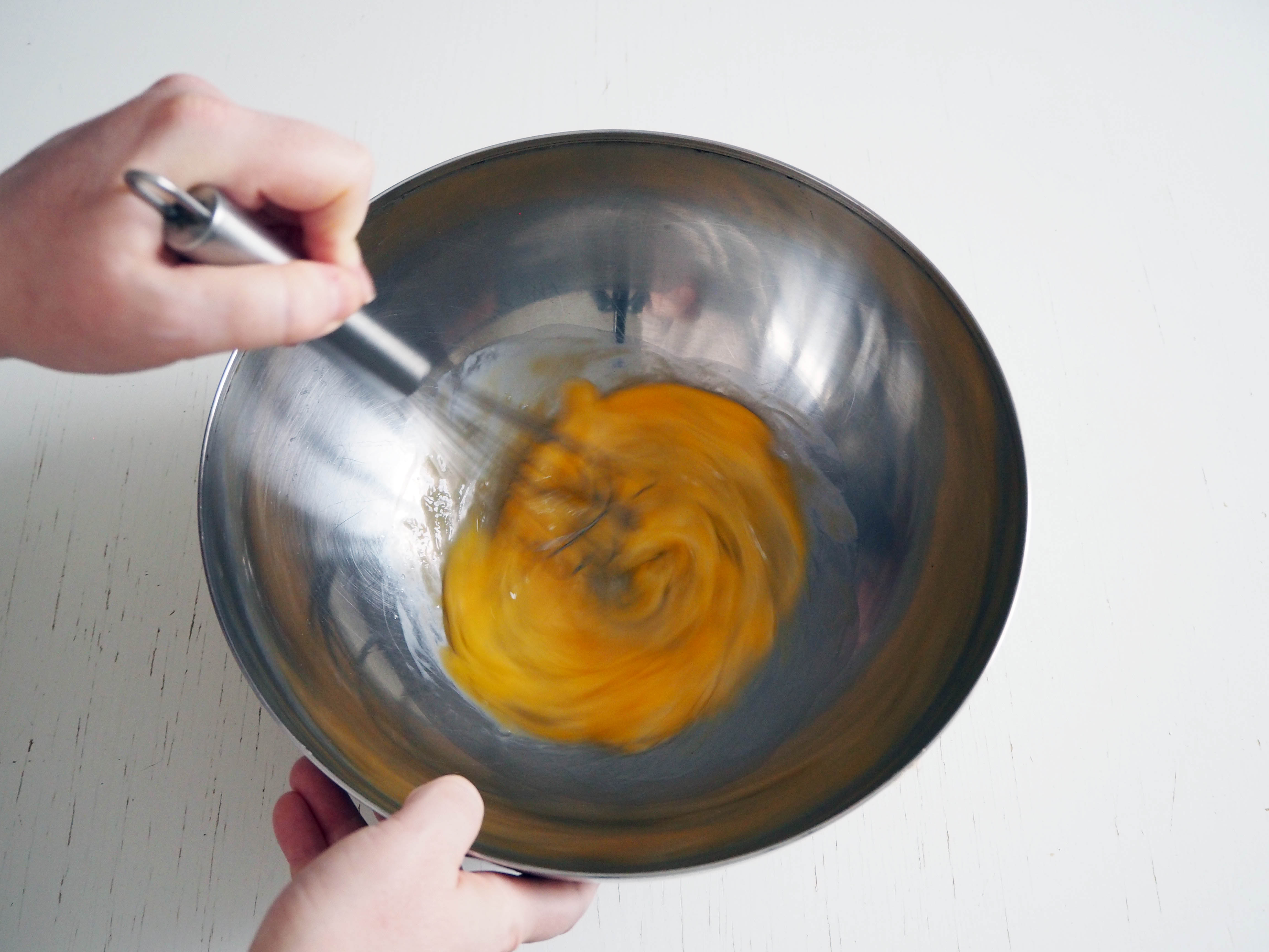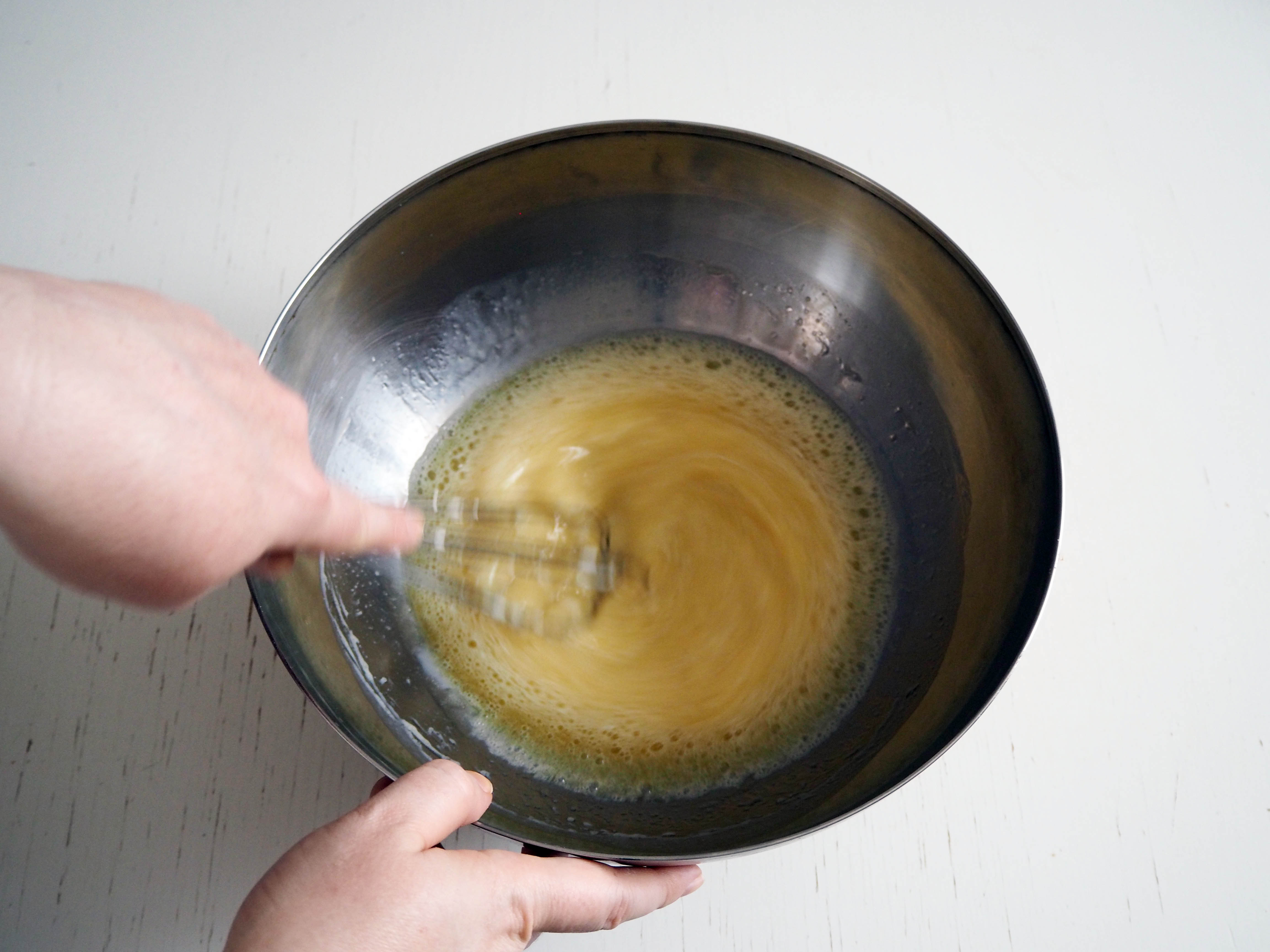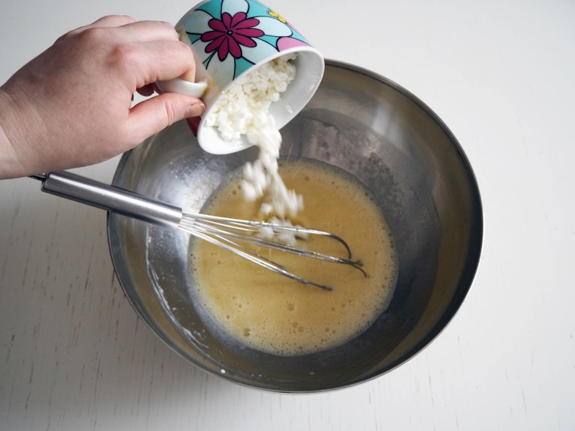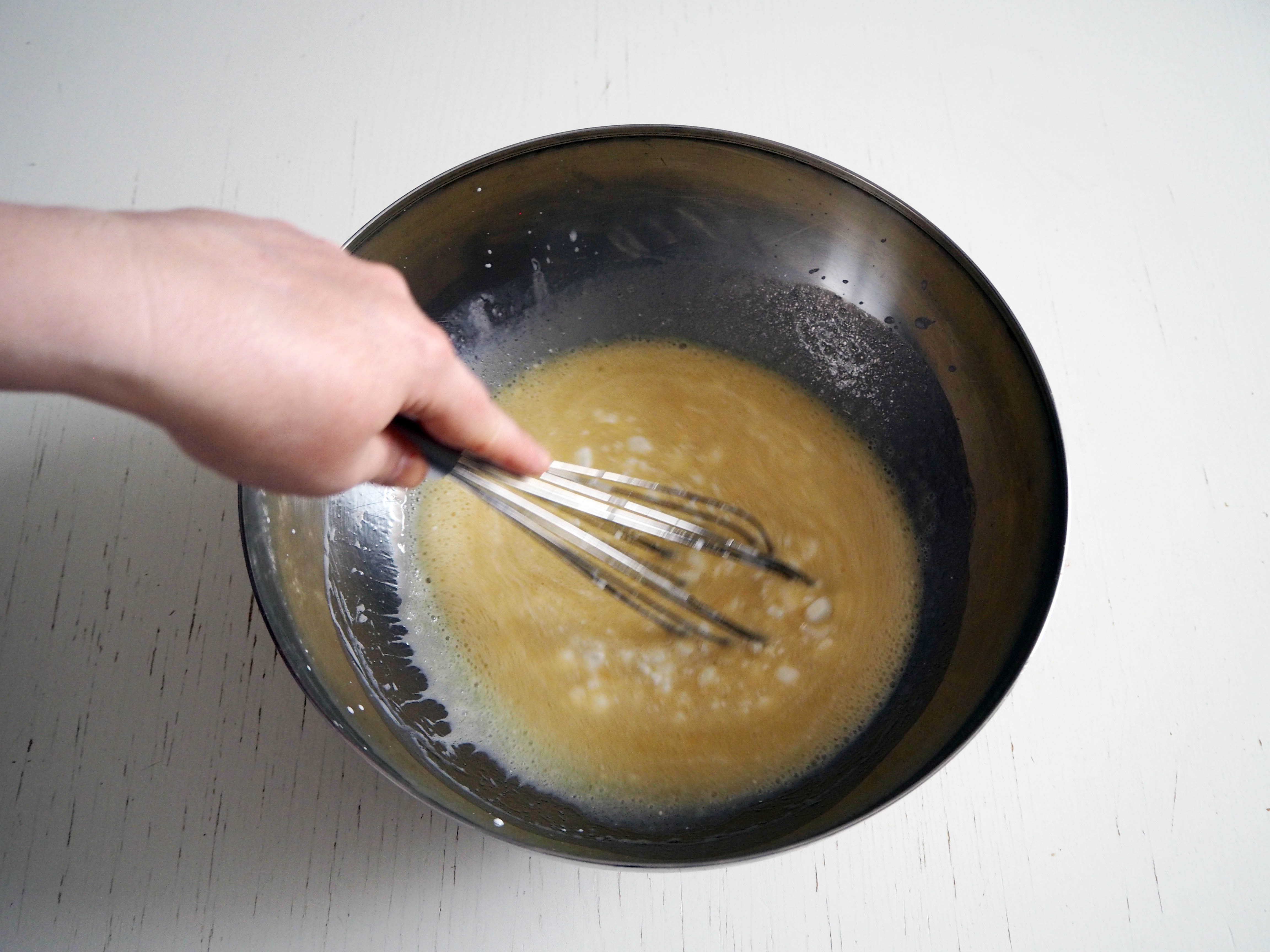 5. Add olive oil, milk and yoghurt and whisk until smooth.