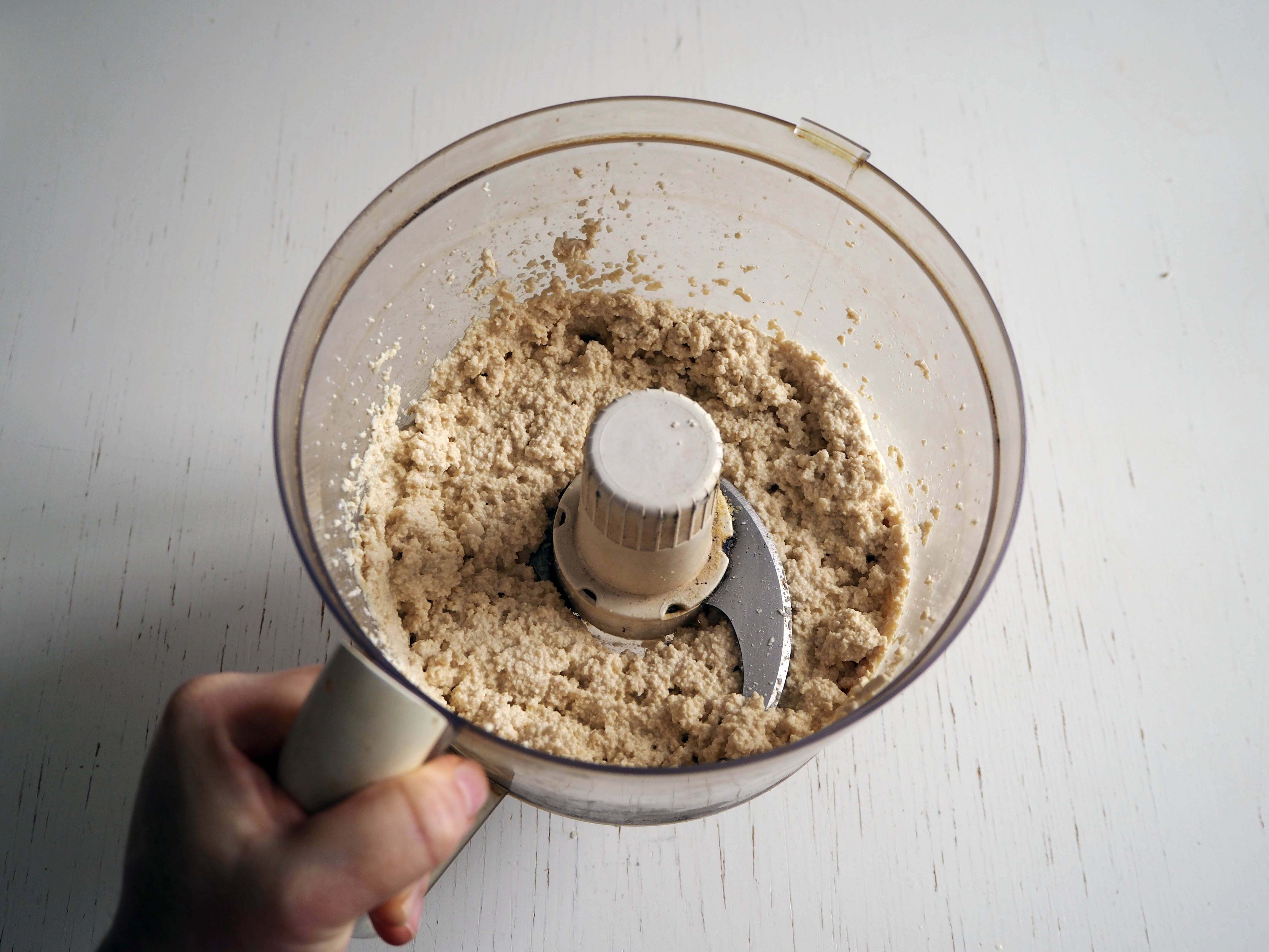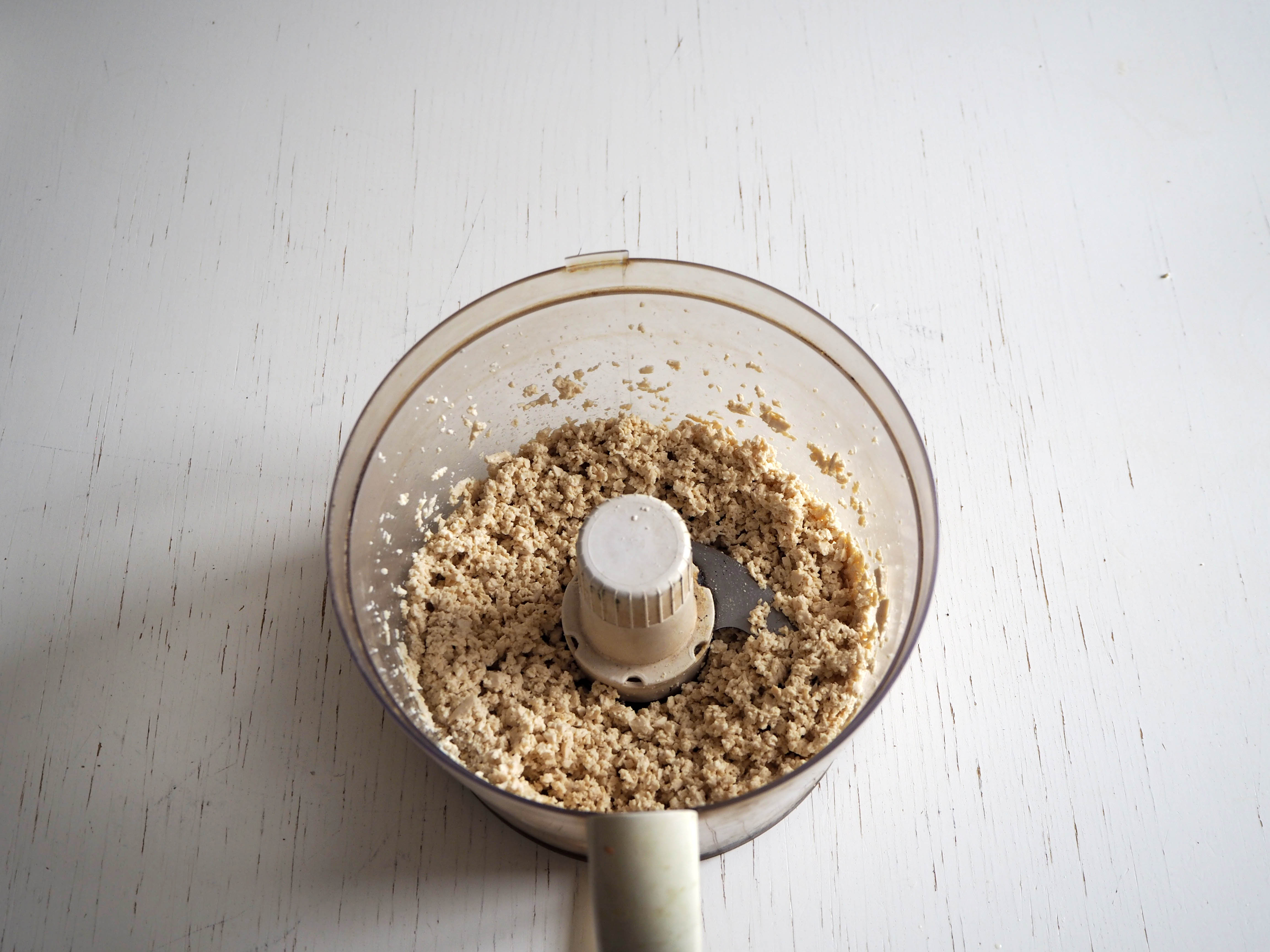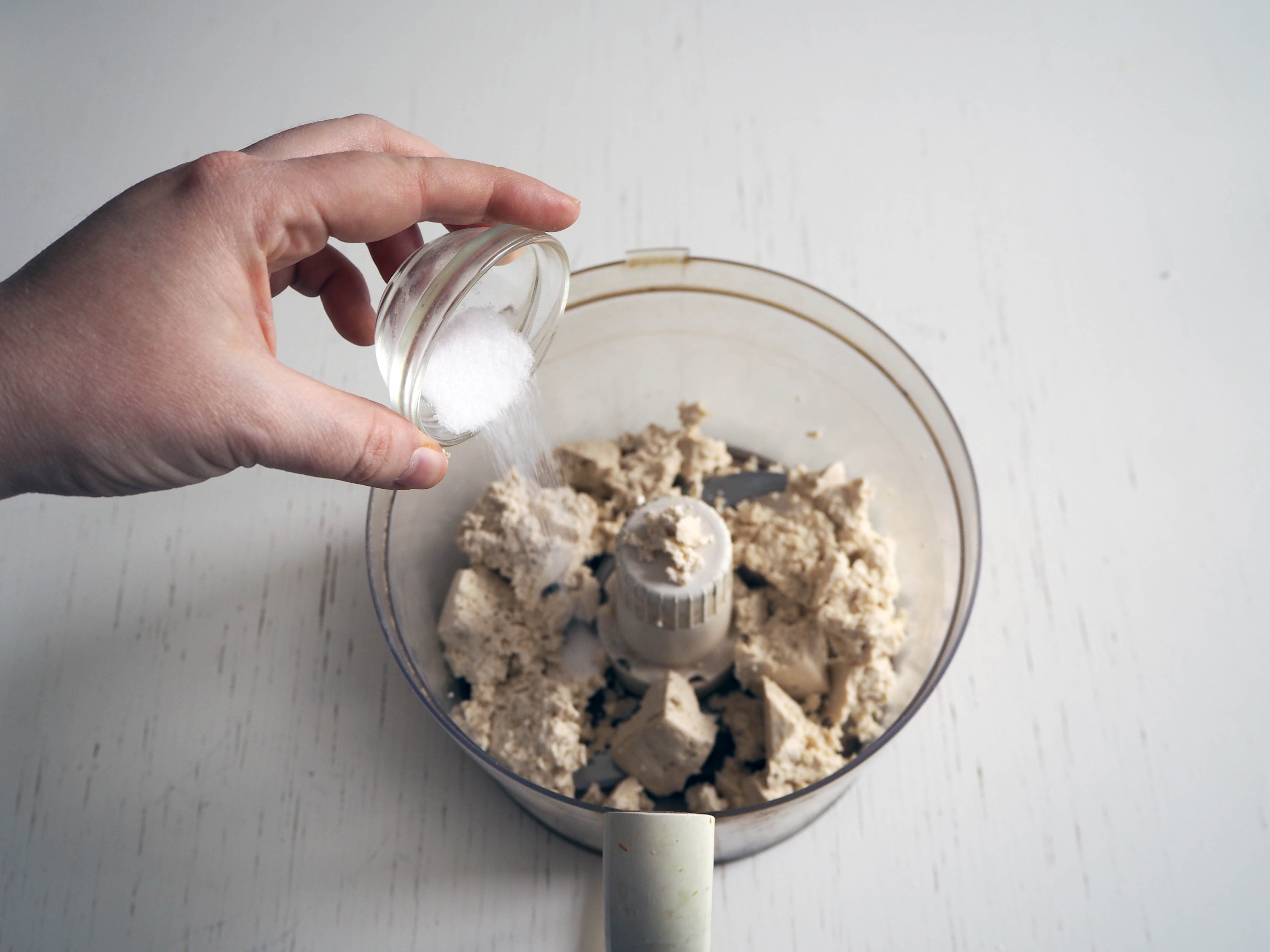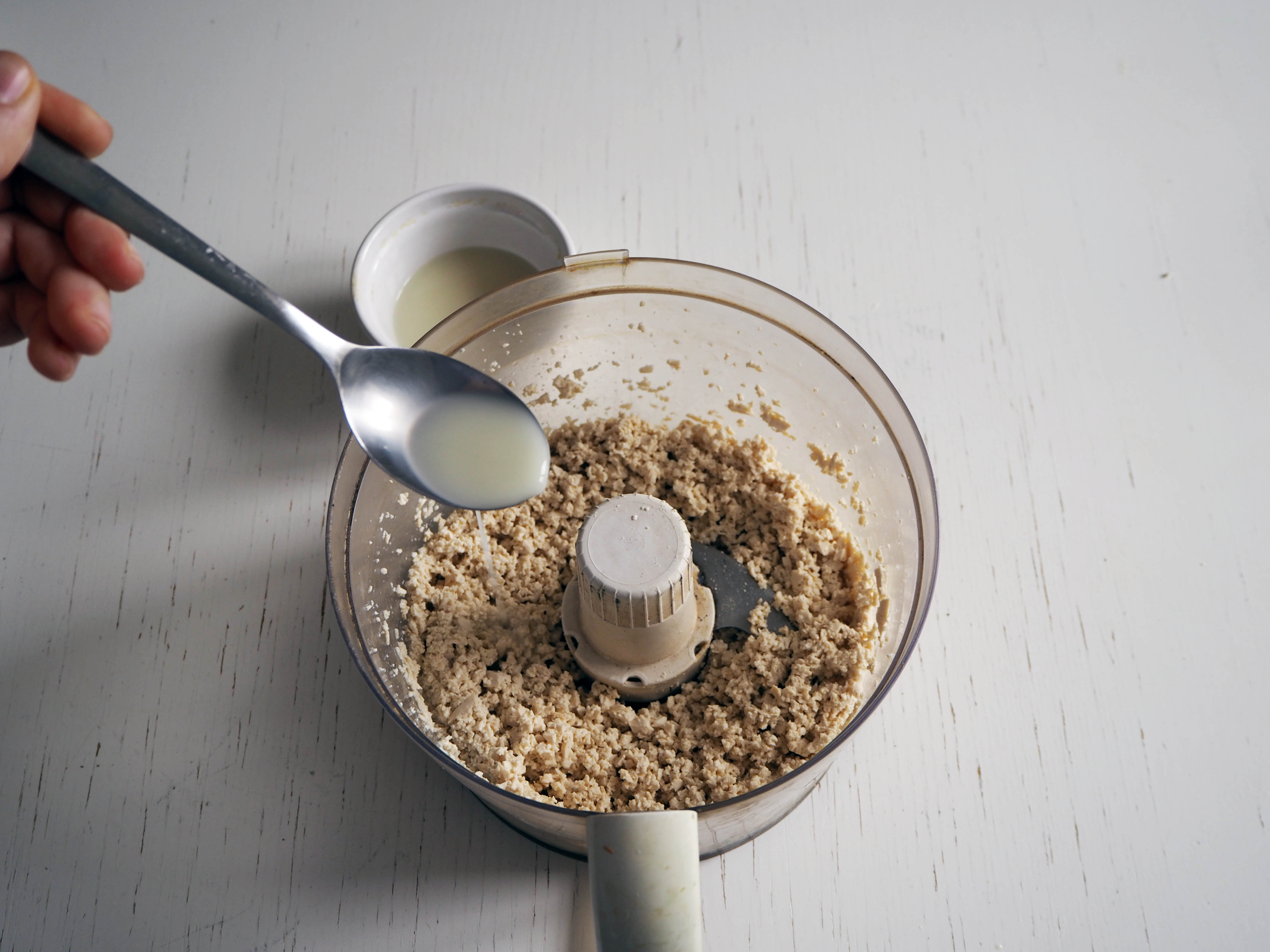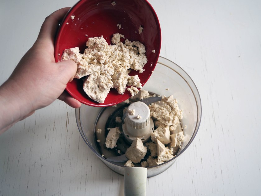 5. Add two tbsp of oat milk to the tofu mixture and process again to create a paste.